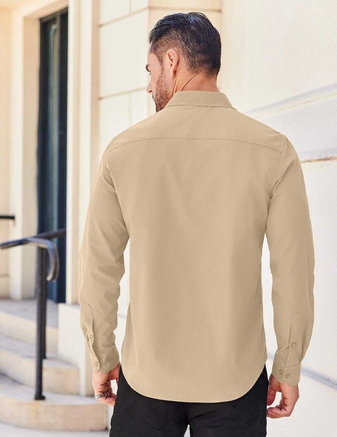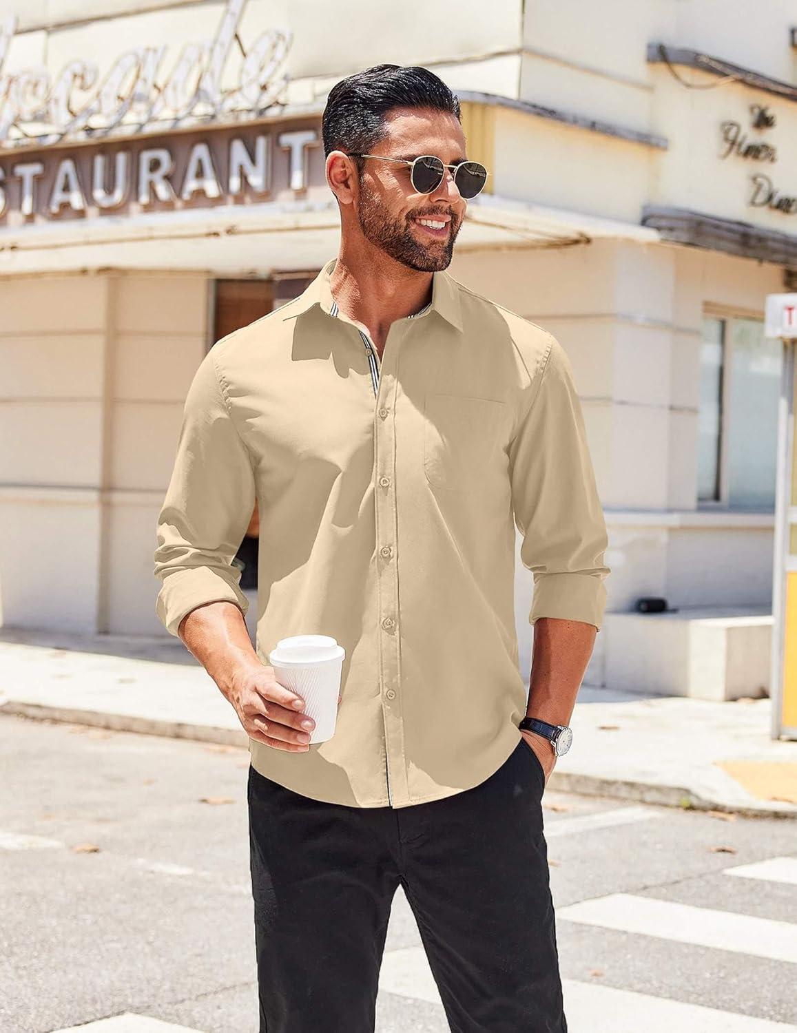 COOFANDY Men’s Long Sleeve Casual Button Down Shirts Untucked Shirts for Men Regular Fit Dress Shirt(Beige)