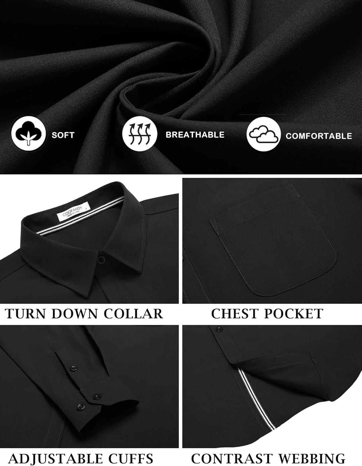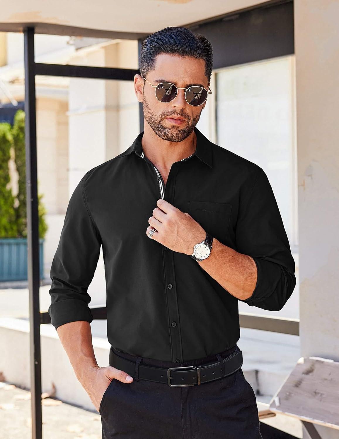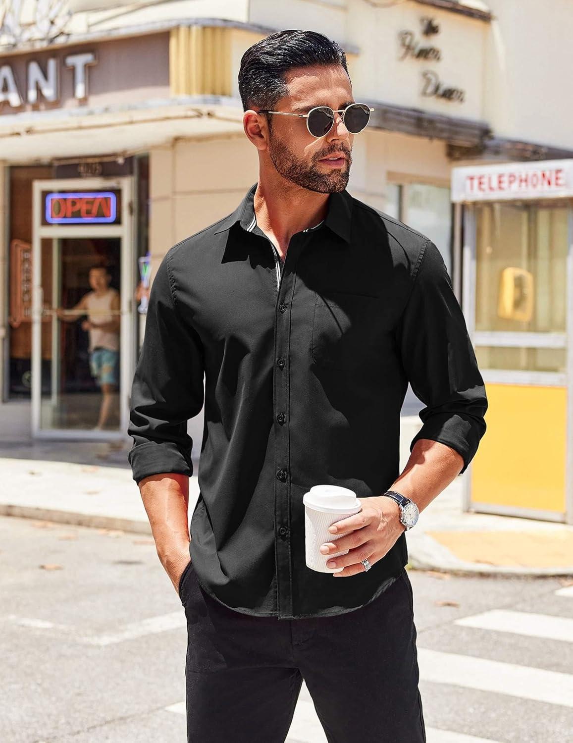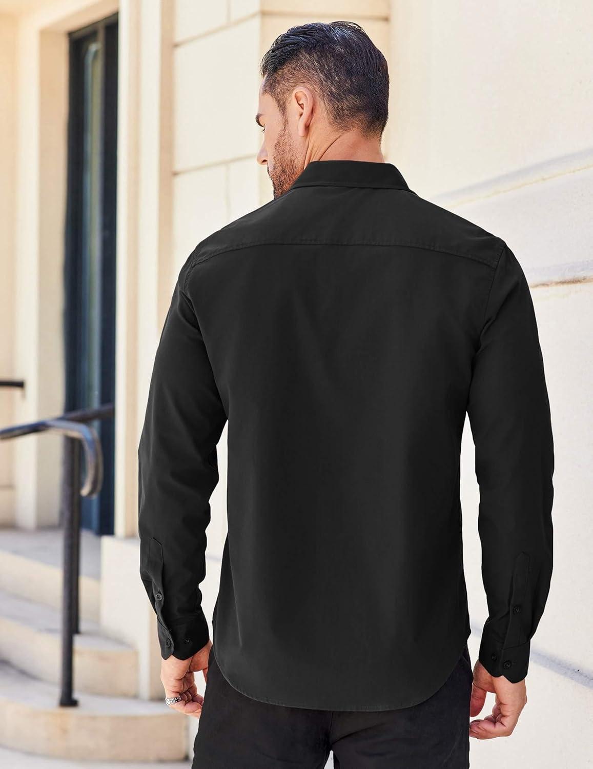 COOFANDY Men’s Long Sleeve Casual Button Down Shirts Untucked Shirts for Men Regular Fit Dress Shirt(Black)