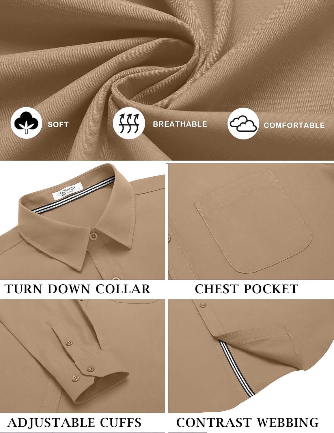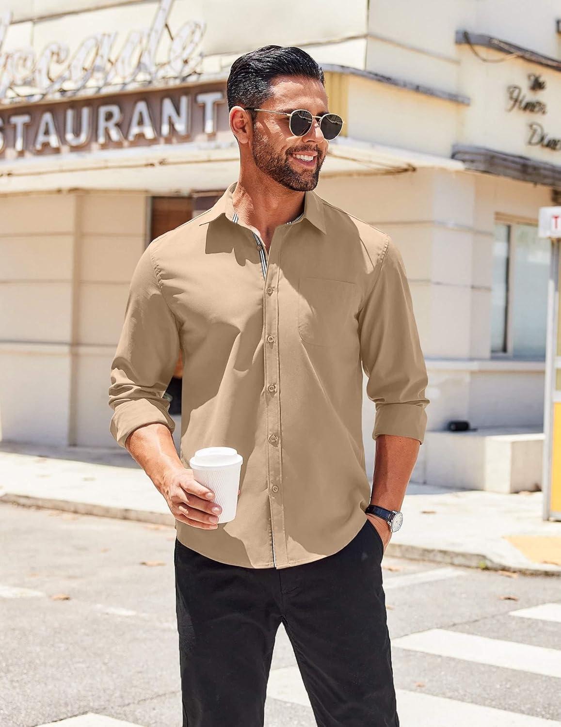 COOFANDY Men’s Long Sleeve Casual Button Down Shirts Untucked Shirts for Men Regular Fit Dress Shirt(Khaki)