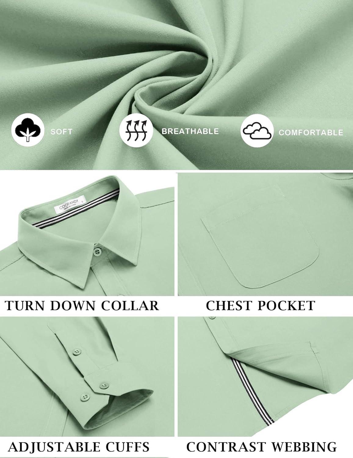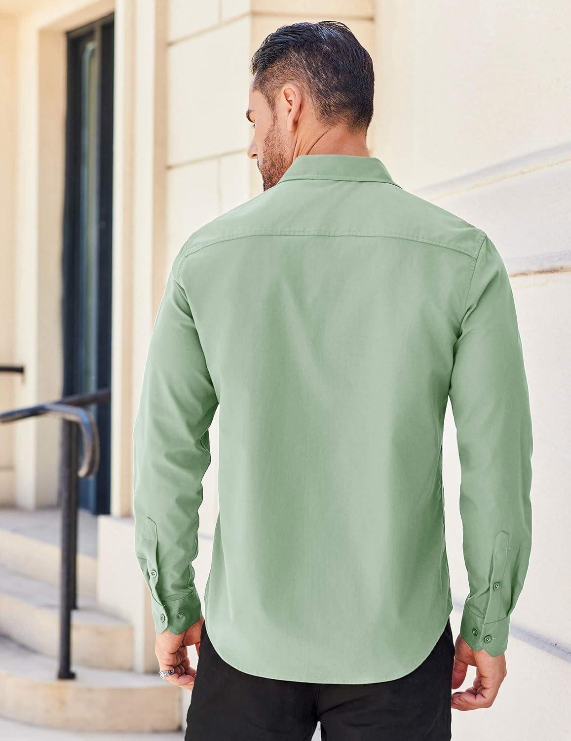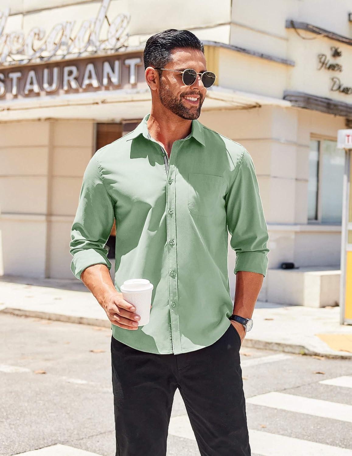 COOFANDY Men’s Long Sleeve Casual Button Down Shirts Untucked Shirts for Men Regular Fit Dress Shirt(Light Green)
