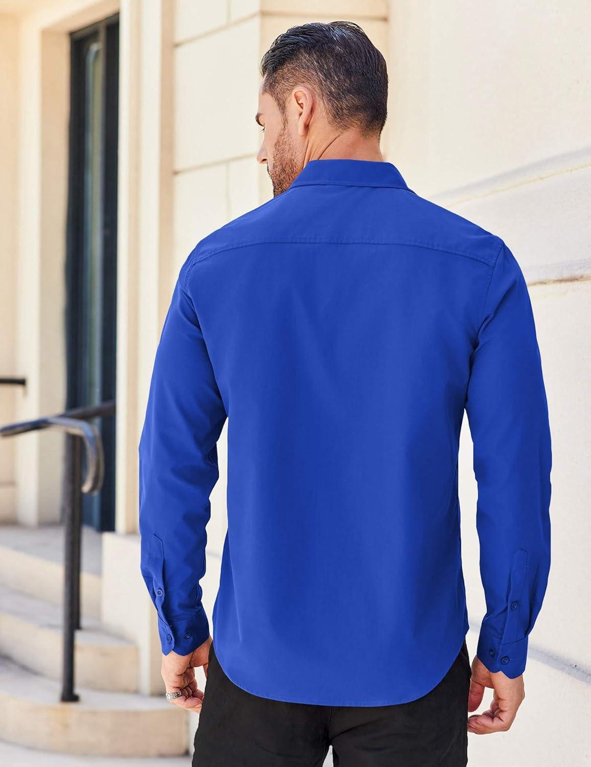 COOFANDY Men’s Long Sleeve Casual Button Down Shirts Untucked Shirts for Men Regular Fit Dress Shirt(Royal Blue)