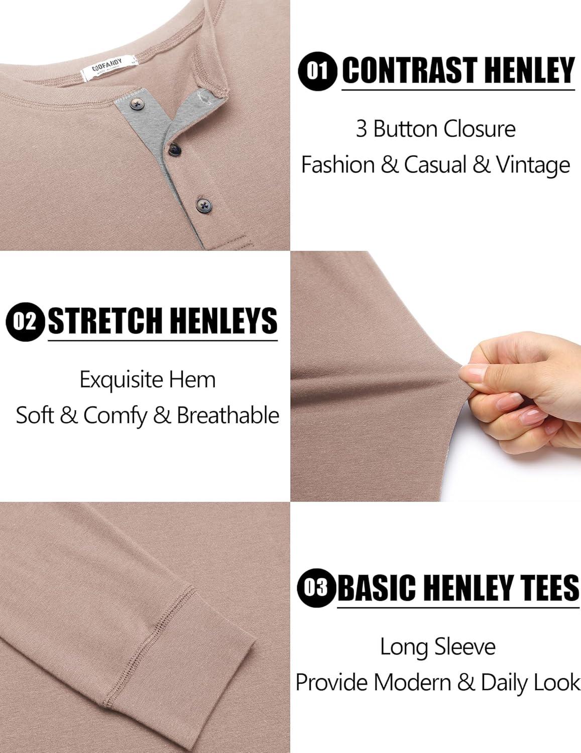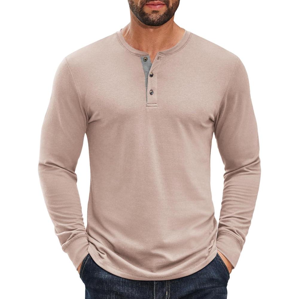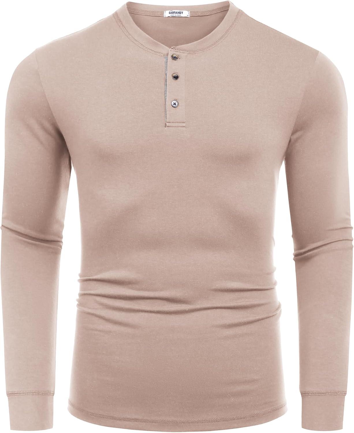 COOFANDY Men’s Long Sleeve Henley Shirts Cotton T-Shirts Casual Pullover Shirt Soft Stretch Basic Tees Fall Tops(Beige)