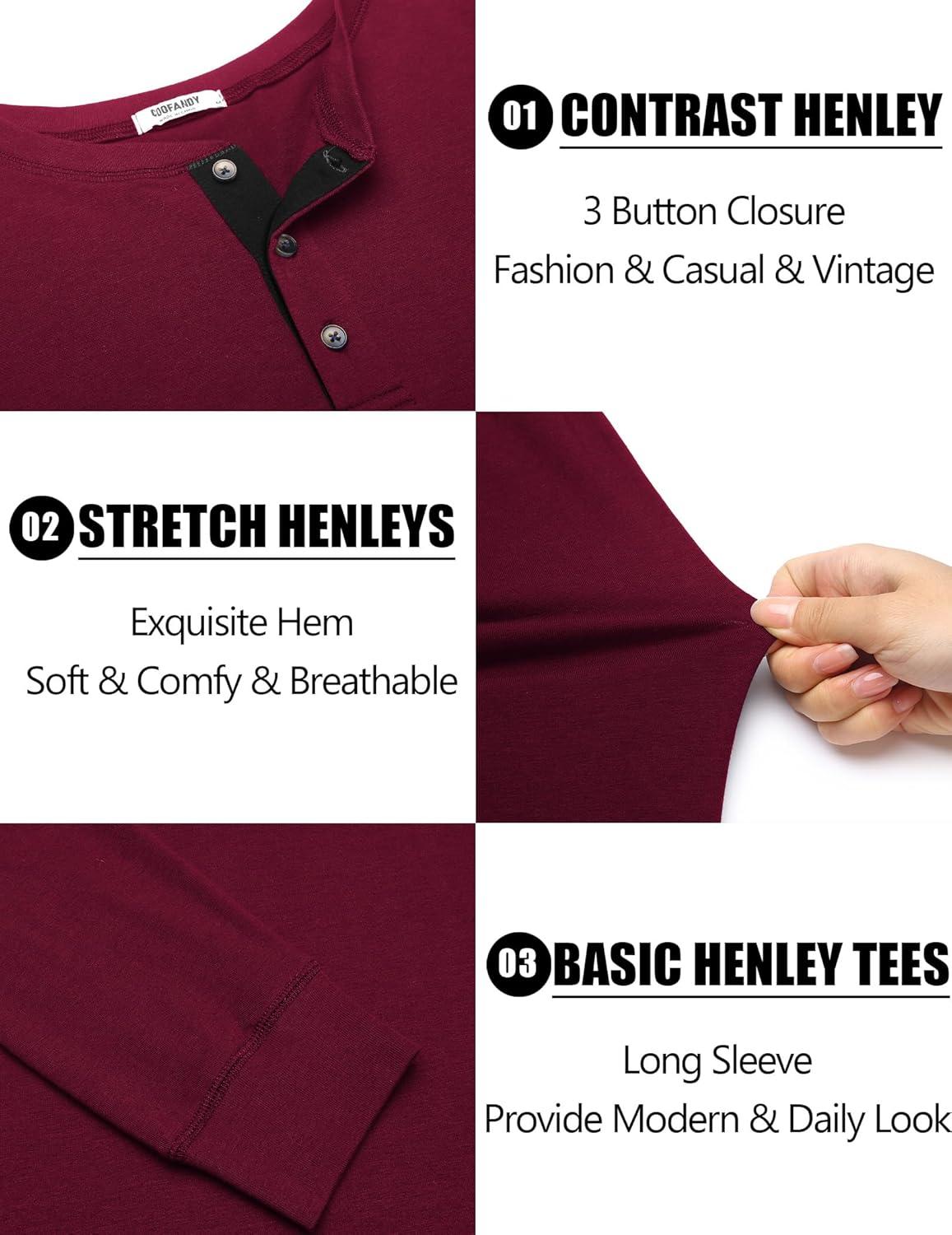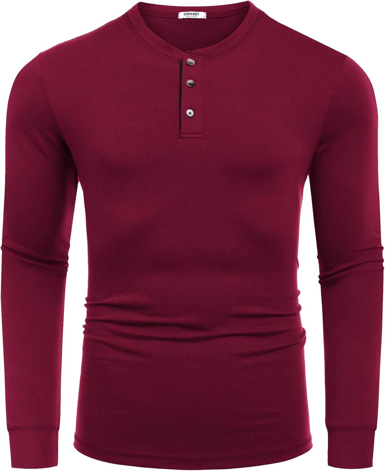 COOFANDY Men’s Long Sleeve Henley Shirts Cotton T-Shirts Casual Pullover Shirt Soft Stretch Basic Tees Fall Tops(Dark Red)