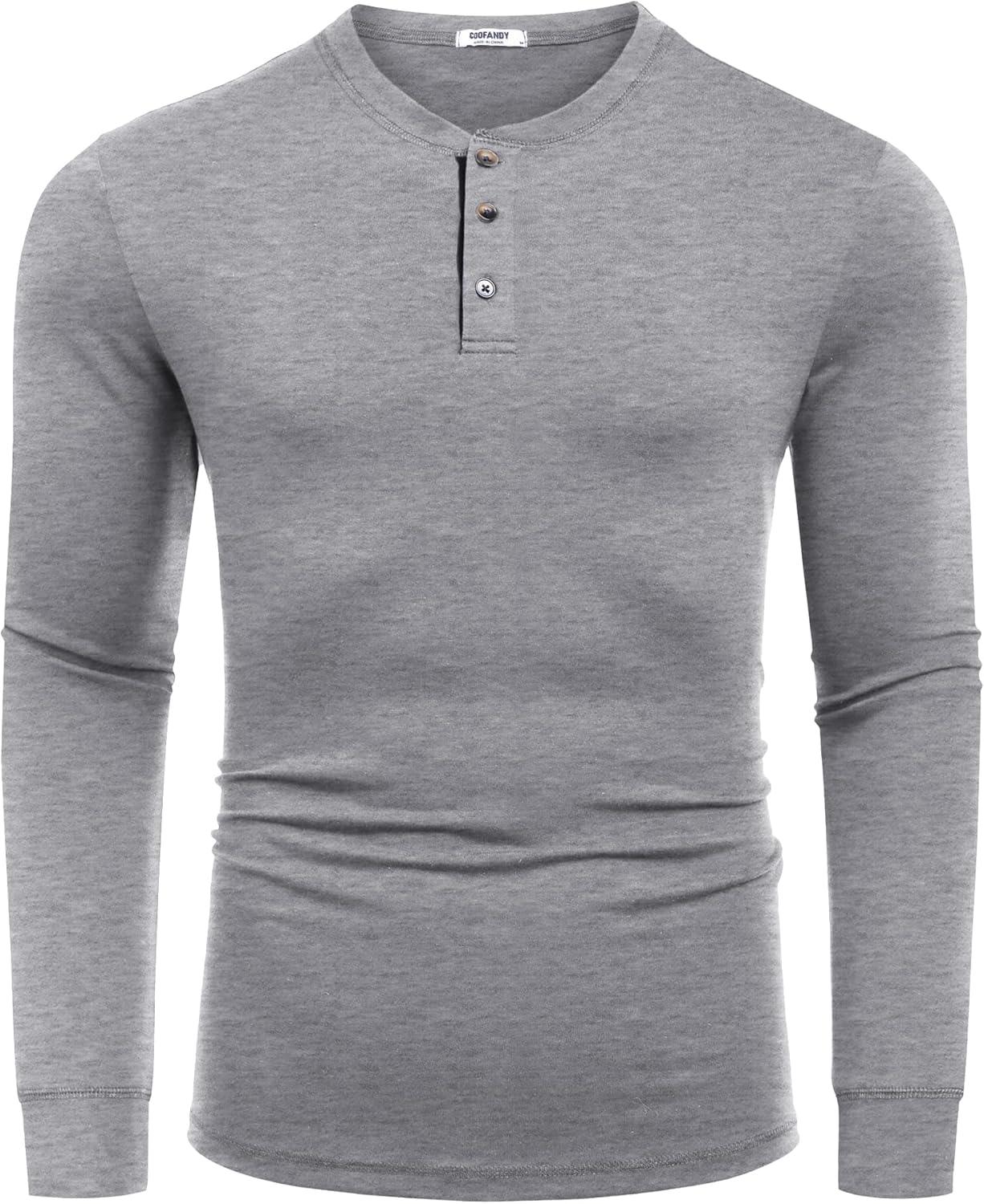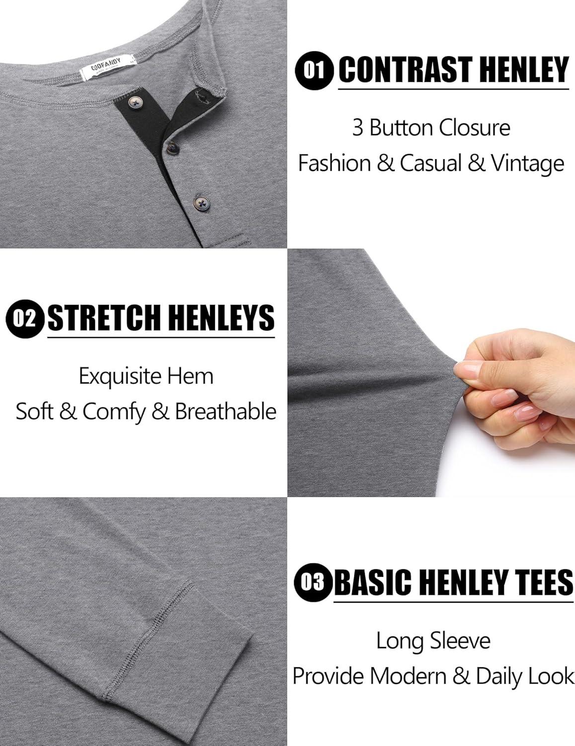 COOFANDY Men’s Long Sleeve Henley Shirts Cotton T-Shirts Casual Pullover Shirt Soft Stretch Basic Tees Fall Tops(Light Grey)