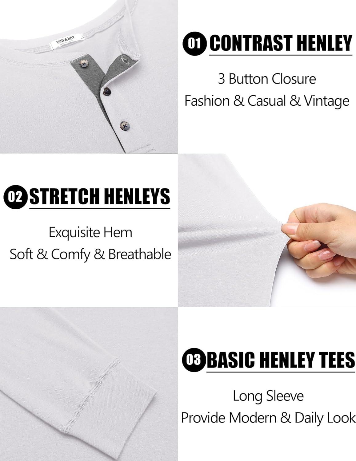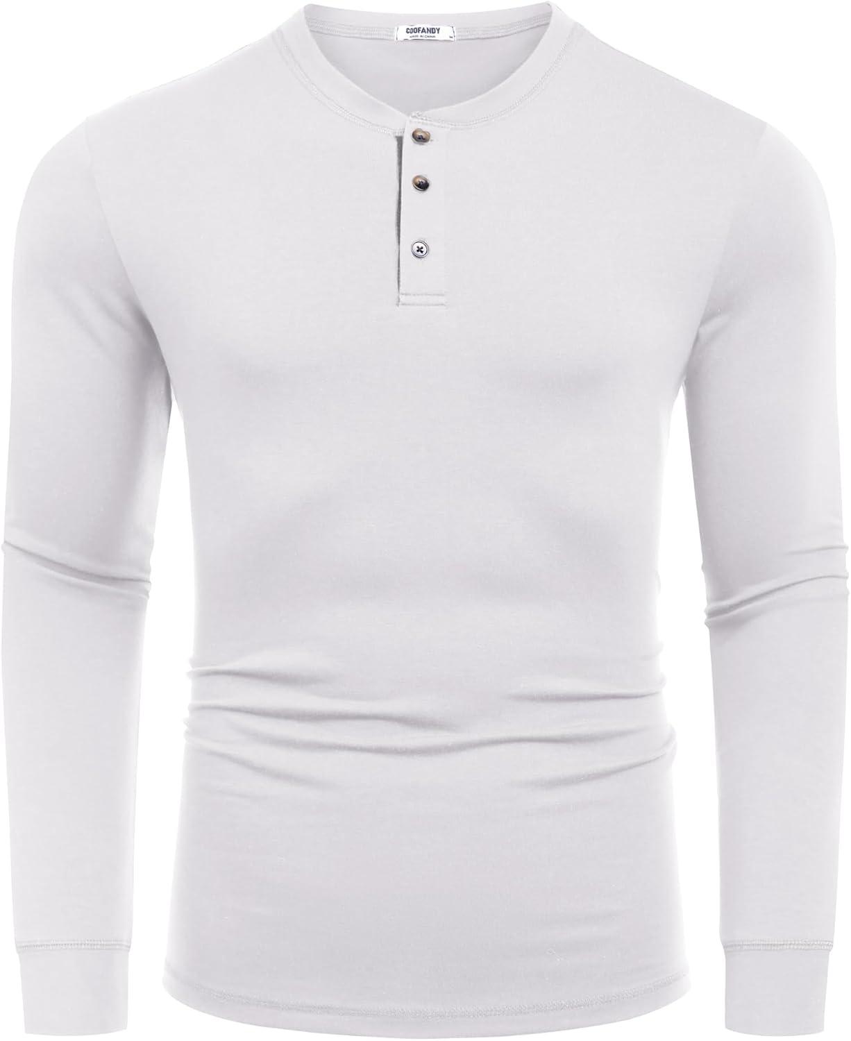 COOFANDY Men’s Long Sleeve Henley Shirts Cotton T-Shirts Casual Pullover Shirt Soft Stretch Basic Tees Fall Tops(White)