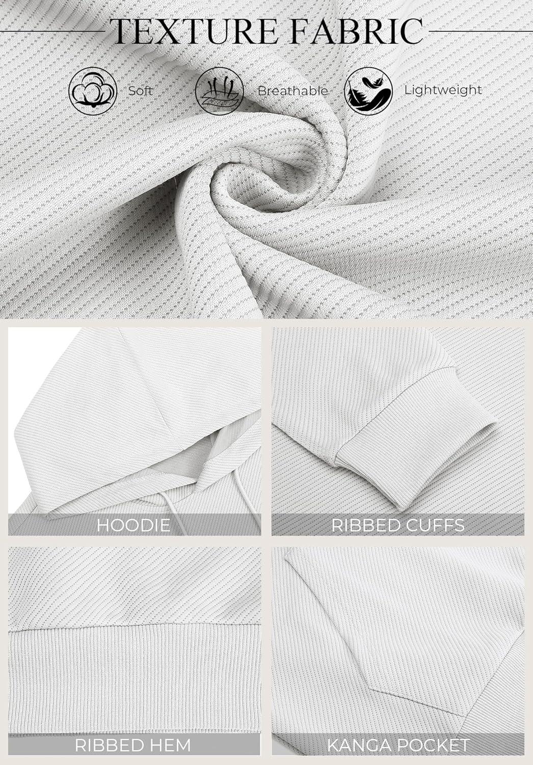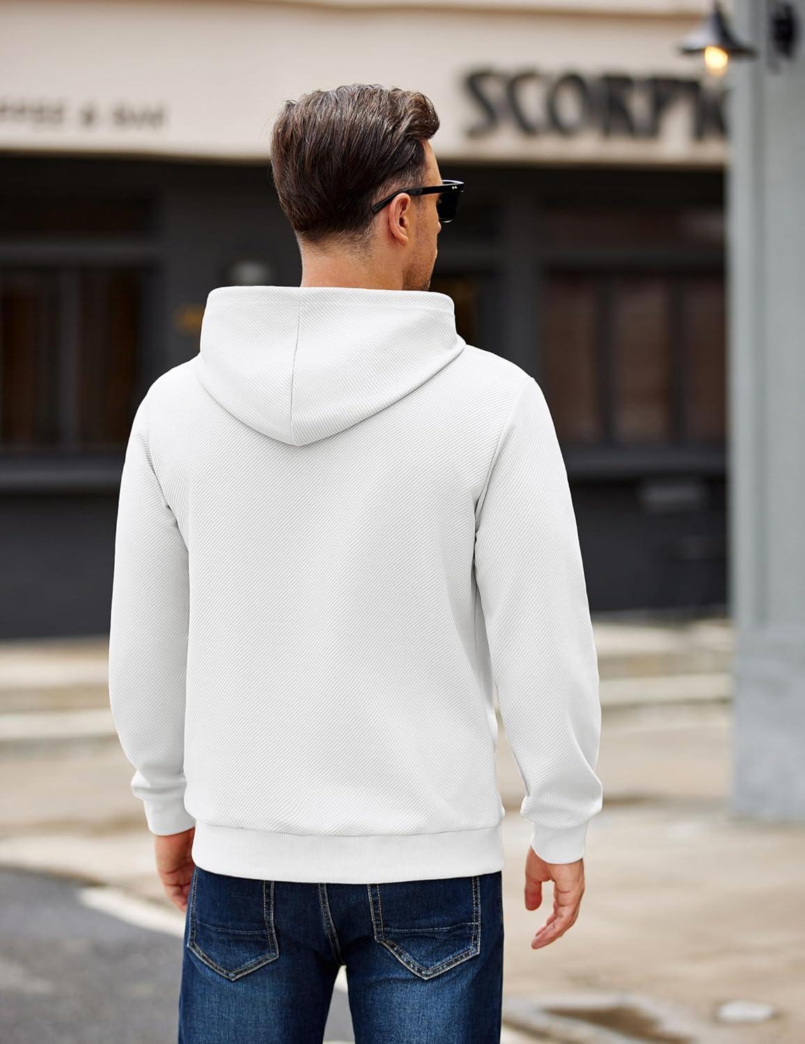COOFANDY Men’s Long Sleeve Hooded Sweatshirt Casual Lightweight Hoodies Pullover Textured Drawstring Hoodie with Kanga Pocket(White)