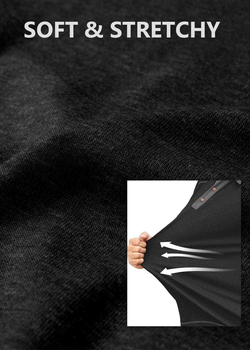 COOFANDY Mens Long Sleeve Polo Shirts Casual Button Collared Shirts Raglan Golf T Shirt(Black)