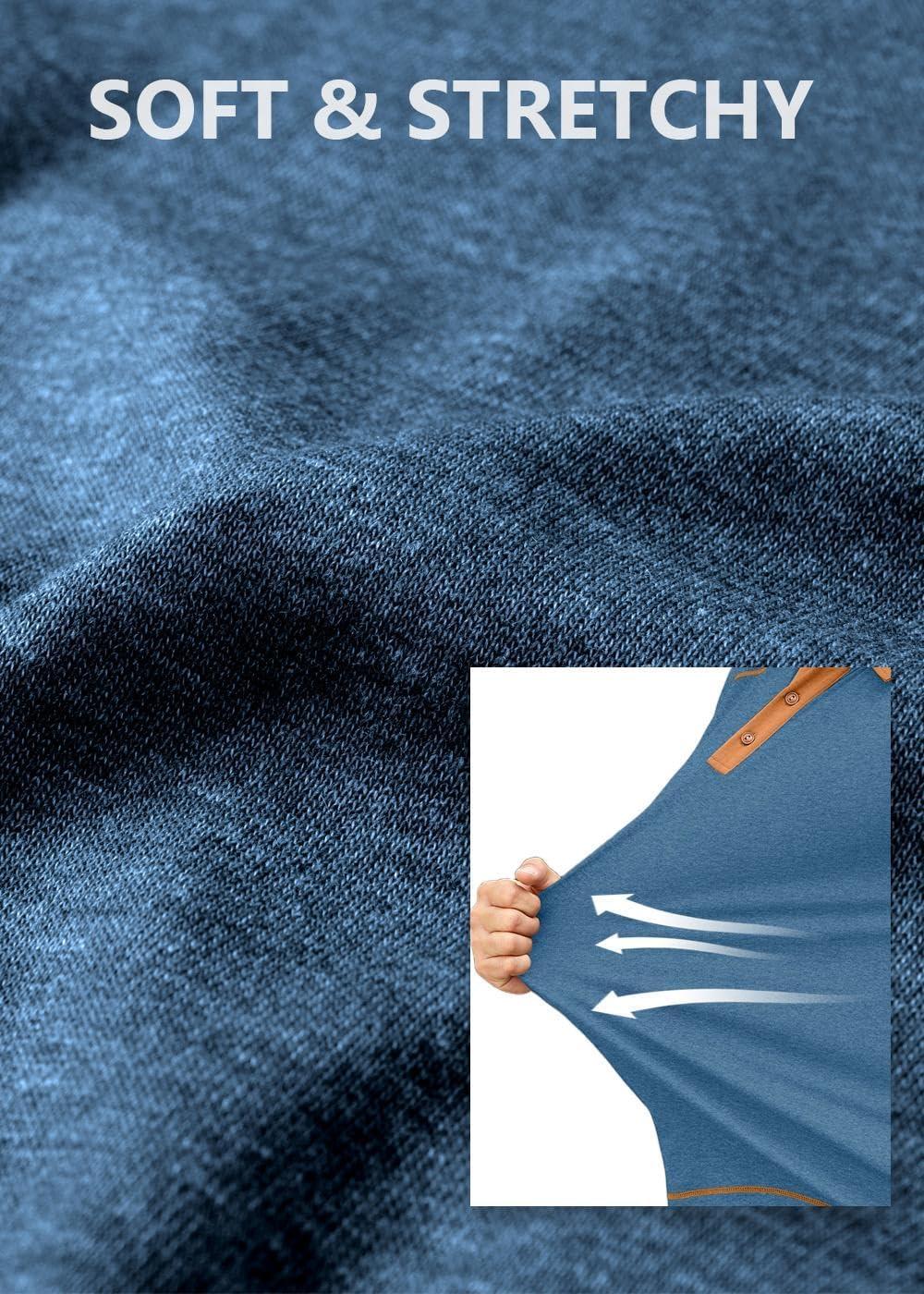 COOFANDY Mens Long Sleeve Polo Shirts Casual Button Collared Shirts Raglan Golf T Shirt(Denim Blue)