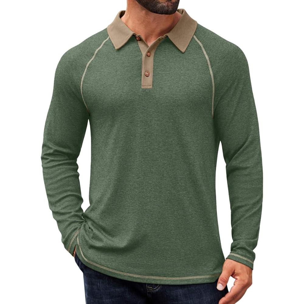 COOFANDY Mens Long Sleeve Polo Shirts Casual Button Collared Shirts Raglan Golf T Shirt(Green)