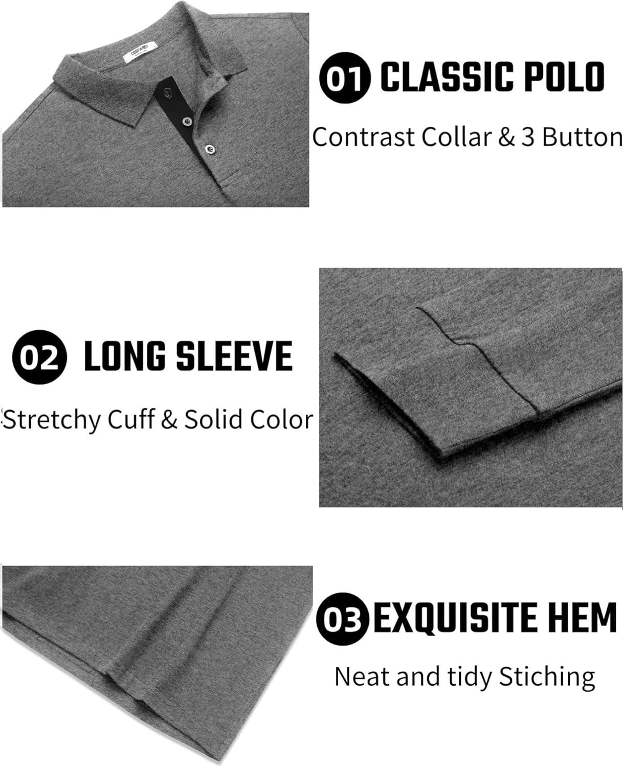 COOFANDY Mens Long Sleeve Polo Shirts Cotton Collared Shirts Casual Business Polo Classic Golf T Shirts(Dark Grey)