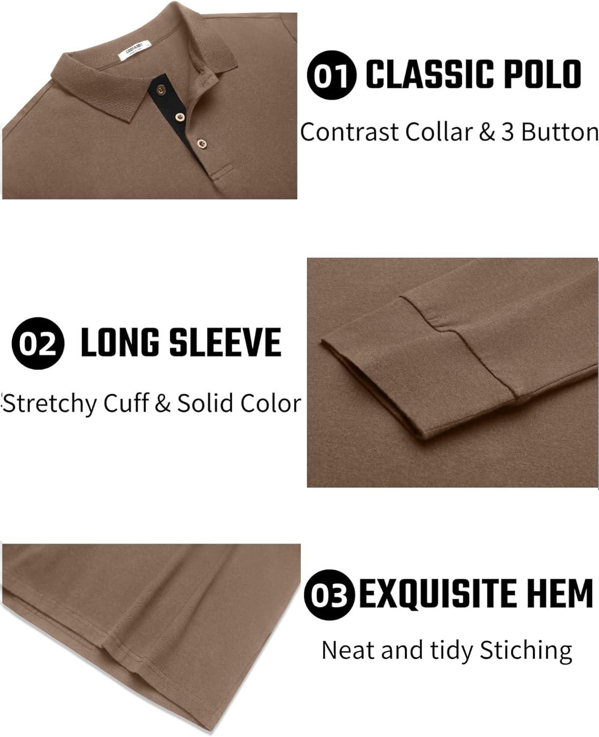 COOFANDY Mens Long Sleeve Polo Shirts Cotton Collared Shirts Casual Business Polo Classic Golf T Shirts(Khaki)
