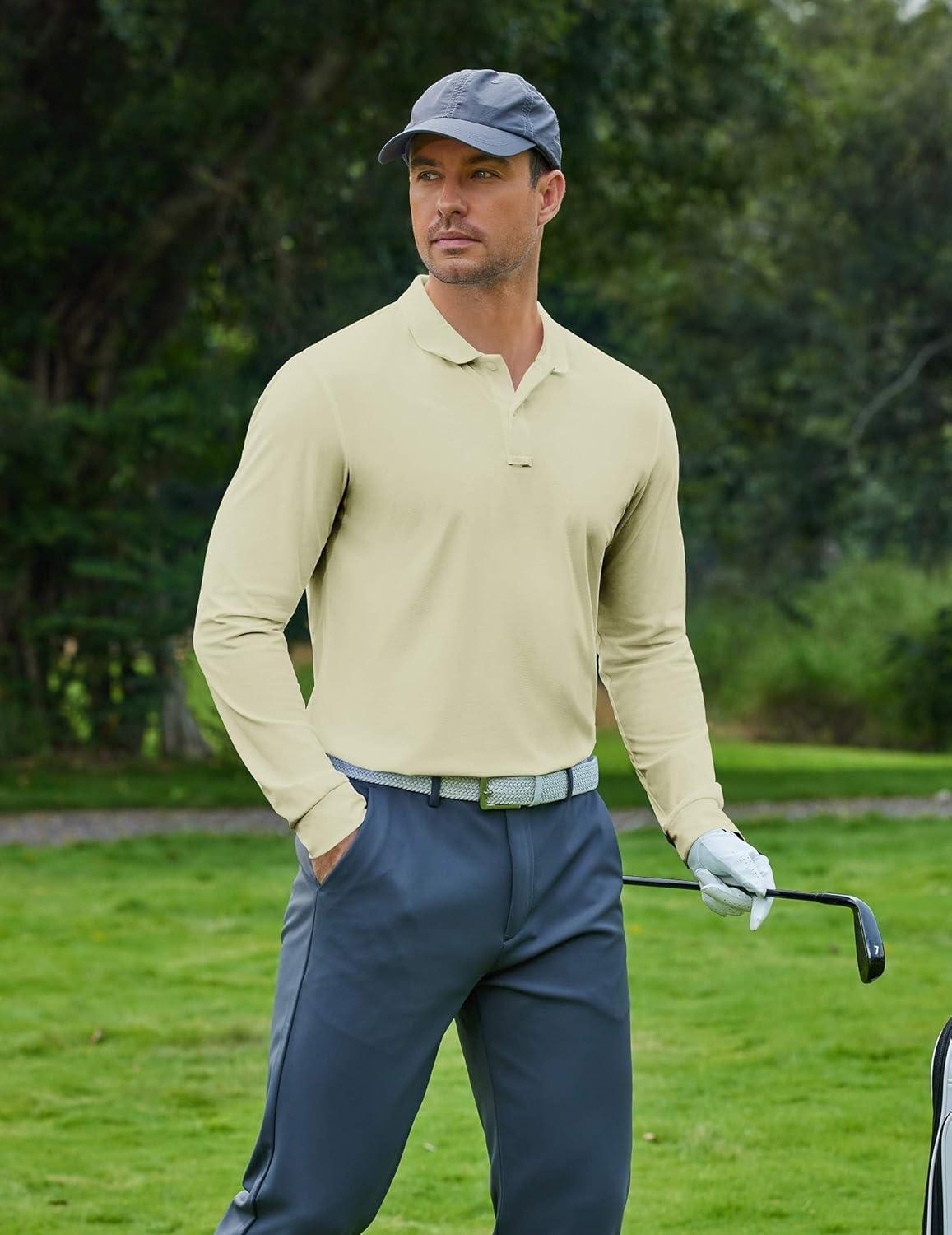 COOFANDY Men’s Long Sleeve Polo Shirts Moisture Wicking Golf Shirts Lightweight Athletic Collared Shirt(Khaki)