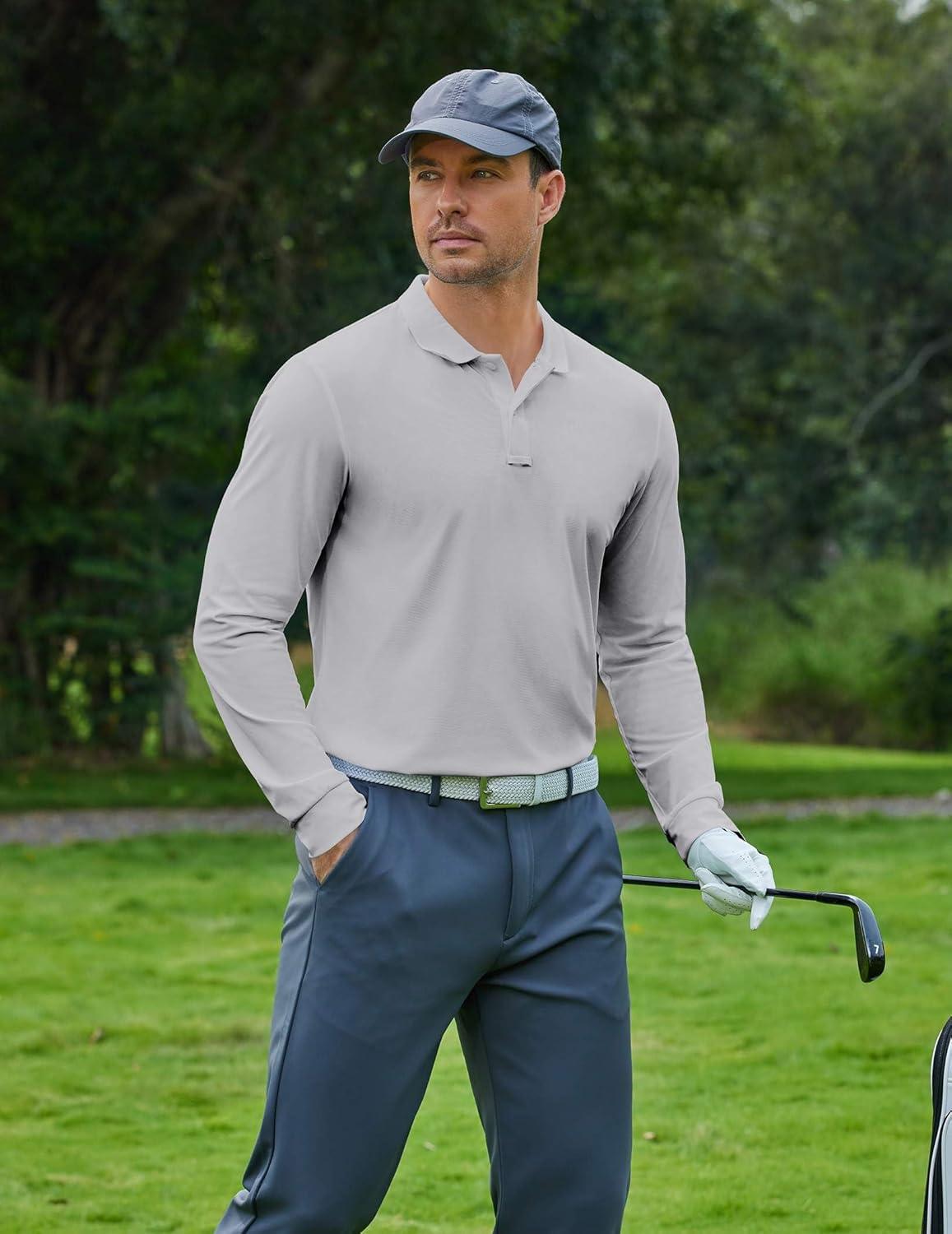 COOFANDY Men’s Long Sleeve Polo Shirts Moisture Wicking Golf Shirts Lightweight Athletic Collared Shirt(Light Grey)