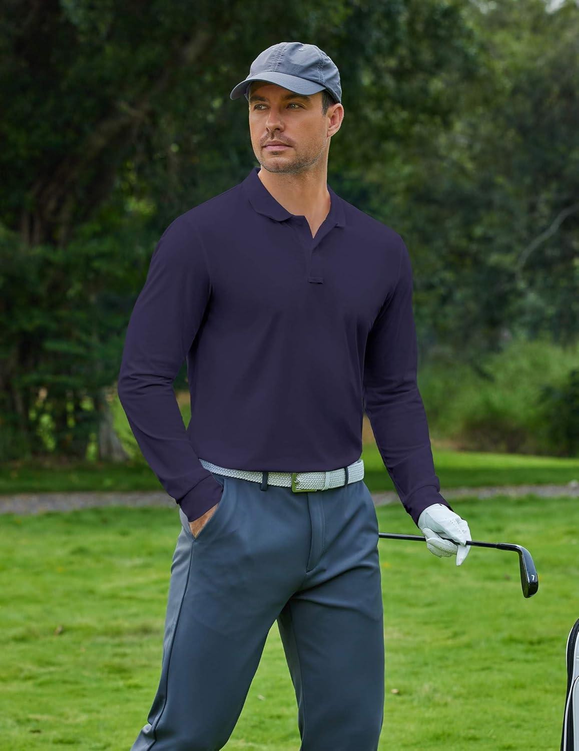 COOFANDY Men’s Long Sleeve Polo Shirts Moisture Wicking Golf Shirts Lightweight Athletic Collared Shirt(Navy)