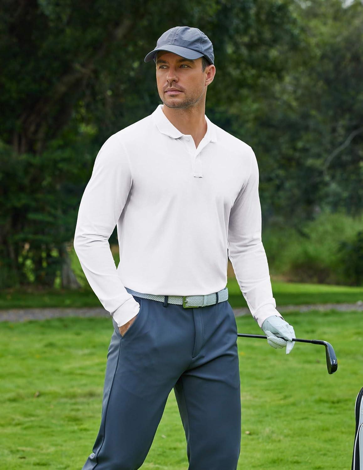 COOFANDY Men’s Long Sleeve Polo Shirts Moisture Wicking Golf Shirts Lightweight Athletic Collared Shirt(White)