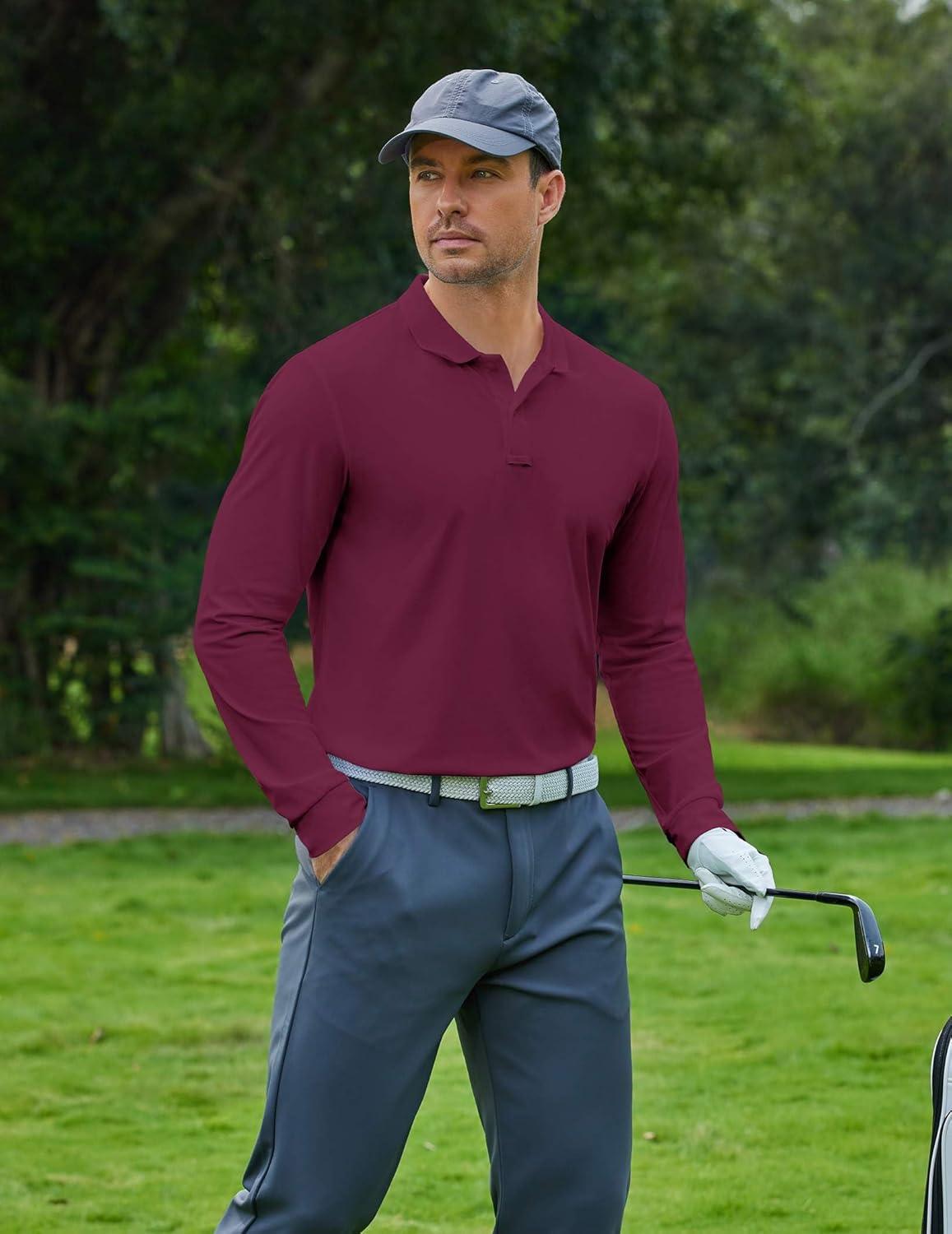 COOFANDY Men’s Long Sleeve Polo Shirts Moisture Wicking Golf Shirts Lightweight Athletic Collared Shirt(Wine Red)