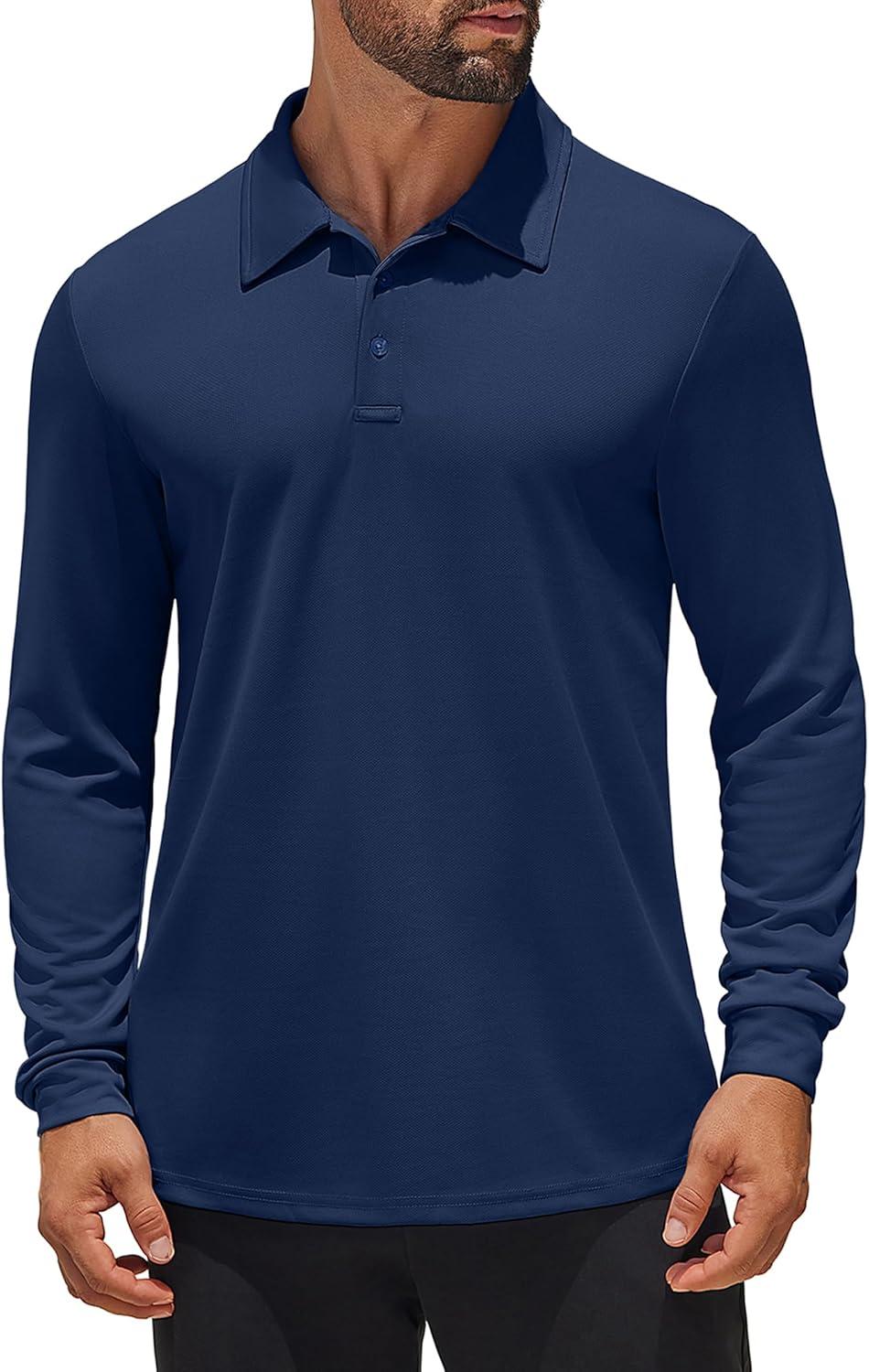 COOFANDY Men’s Long Sleeve Polo Shirts Quick Dry Moisture Wicking Lightweight Golf Shirts Casual Collared Shirt(Navy Blue)