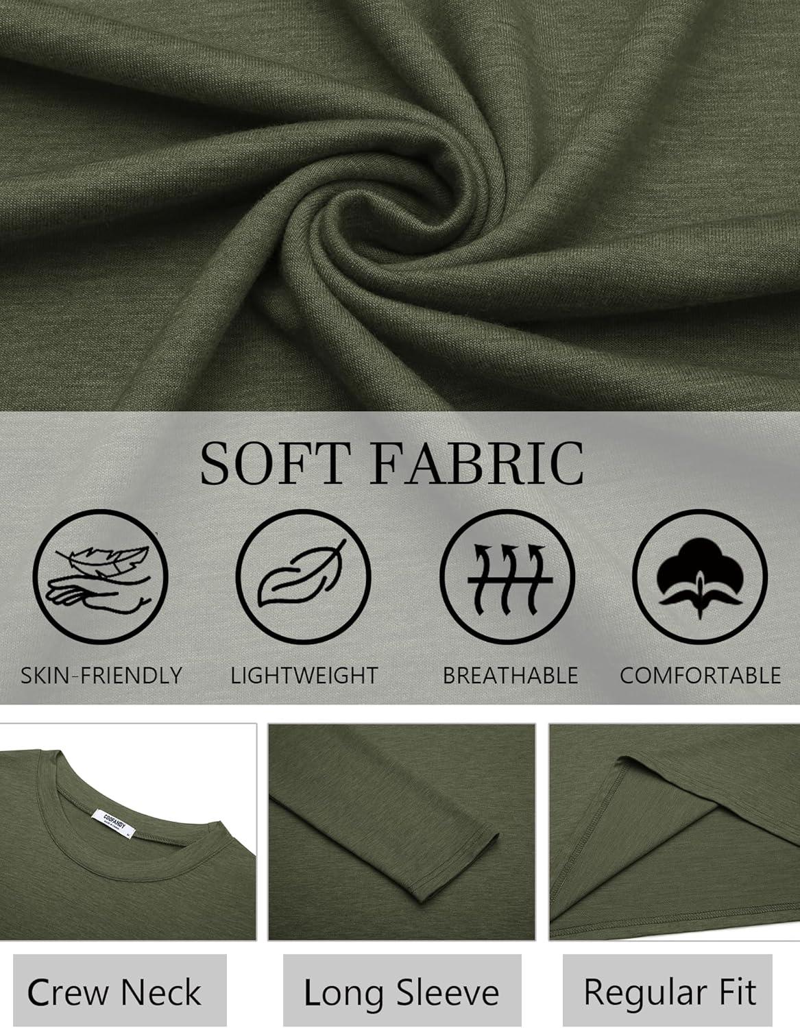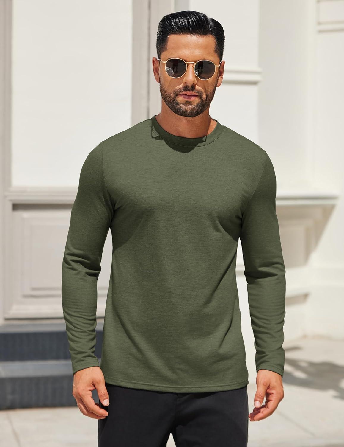 COOFANDY Mens Long Sleeve T Shirts Crew Neck Casual Basic Tee Shirt Lightweight Pullover Shirts(1 Pack-army Green)