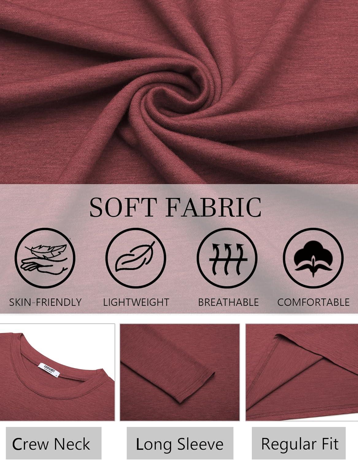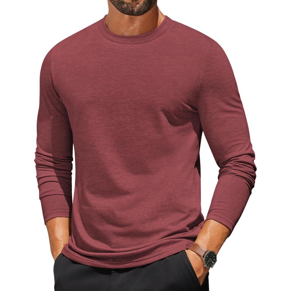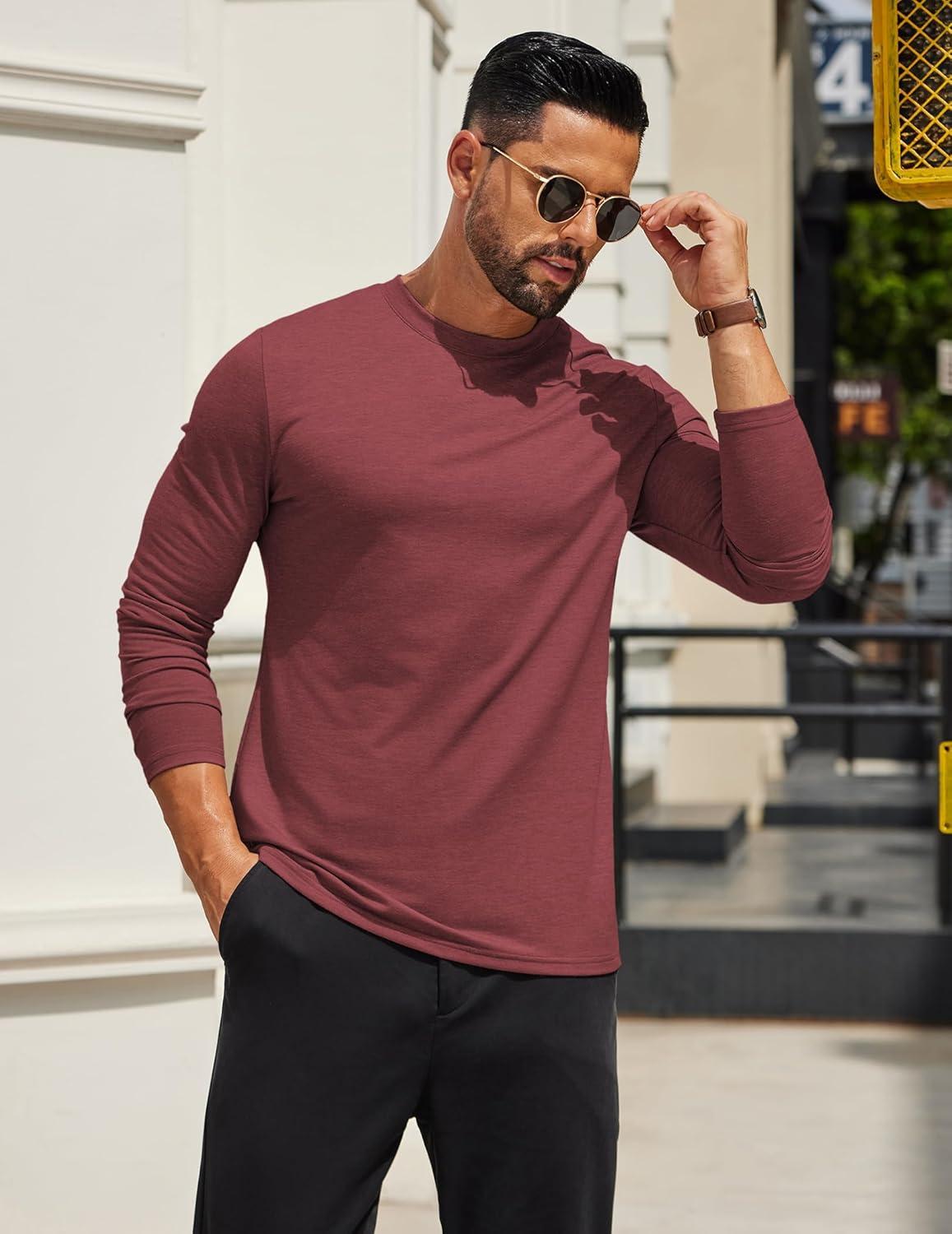 COOFANDY Mens Long Sleeve T Shirts Crew Neck Casual Basic Tee Shirt Lightweight Pullover Shirts(1 Pack-wine Red)