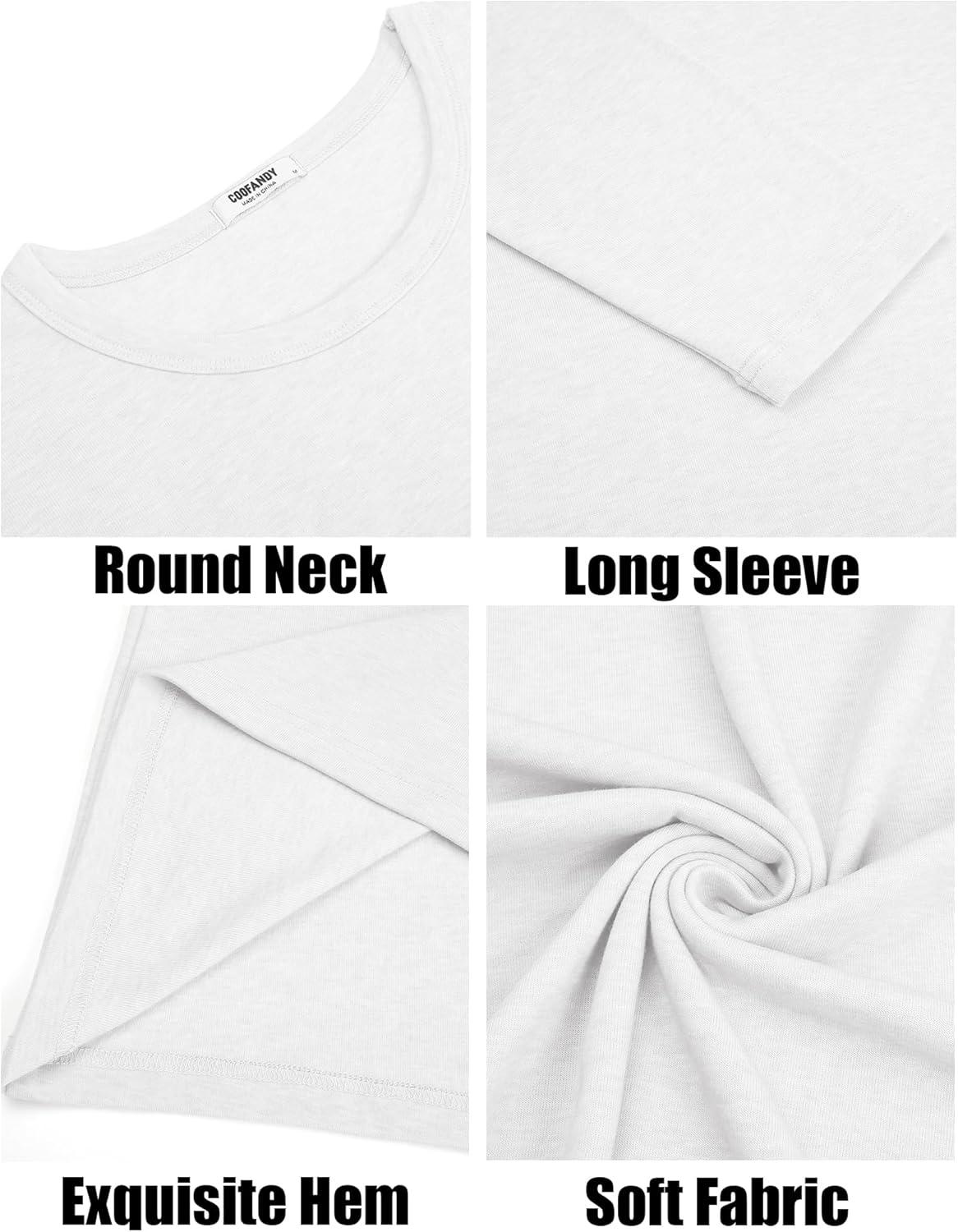 COOFANDY Men’s Long Sleeve Tee Shirts Crew Neck T Shirt Solid Casual Basic Tees Soft Stretch T-Shirts(All White)