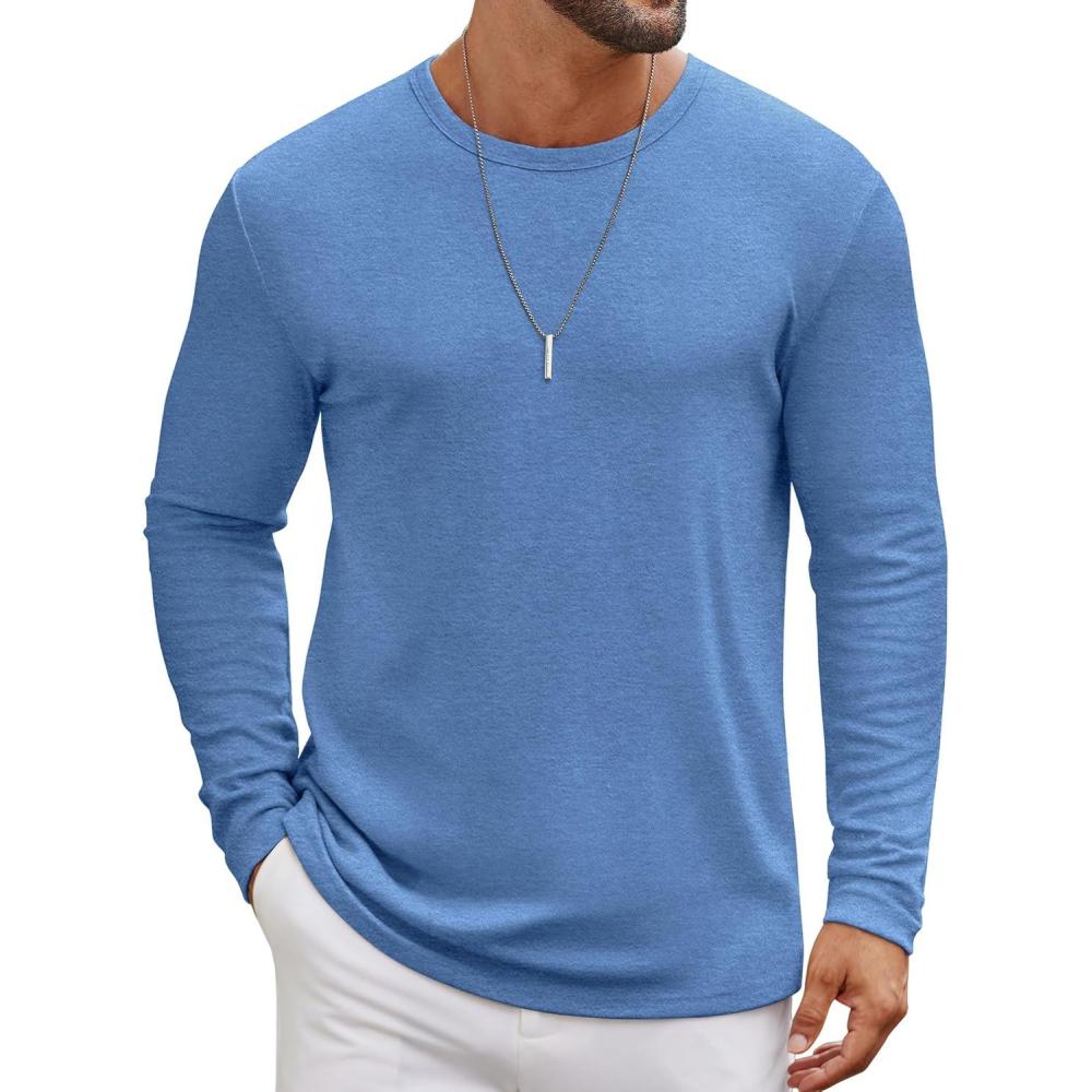 COOFANDY Men’s Long Sleeve Tee Shirts Crew Neck T Shirt Solid Casual Basic Tees Soft Stretch T-Shirts(Blue)