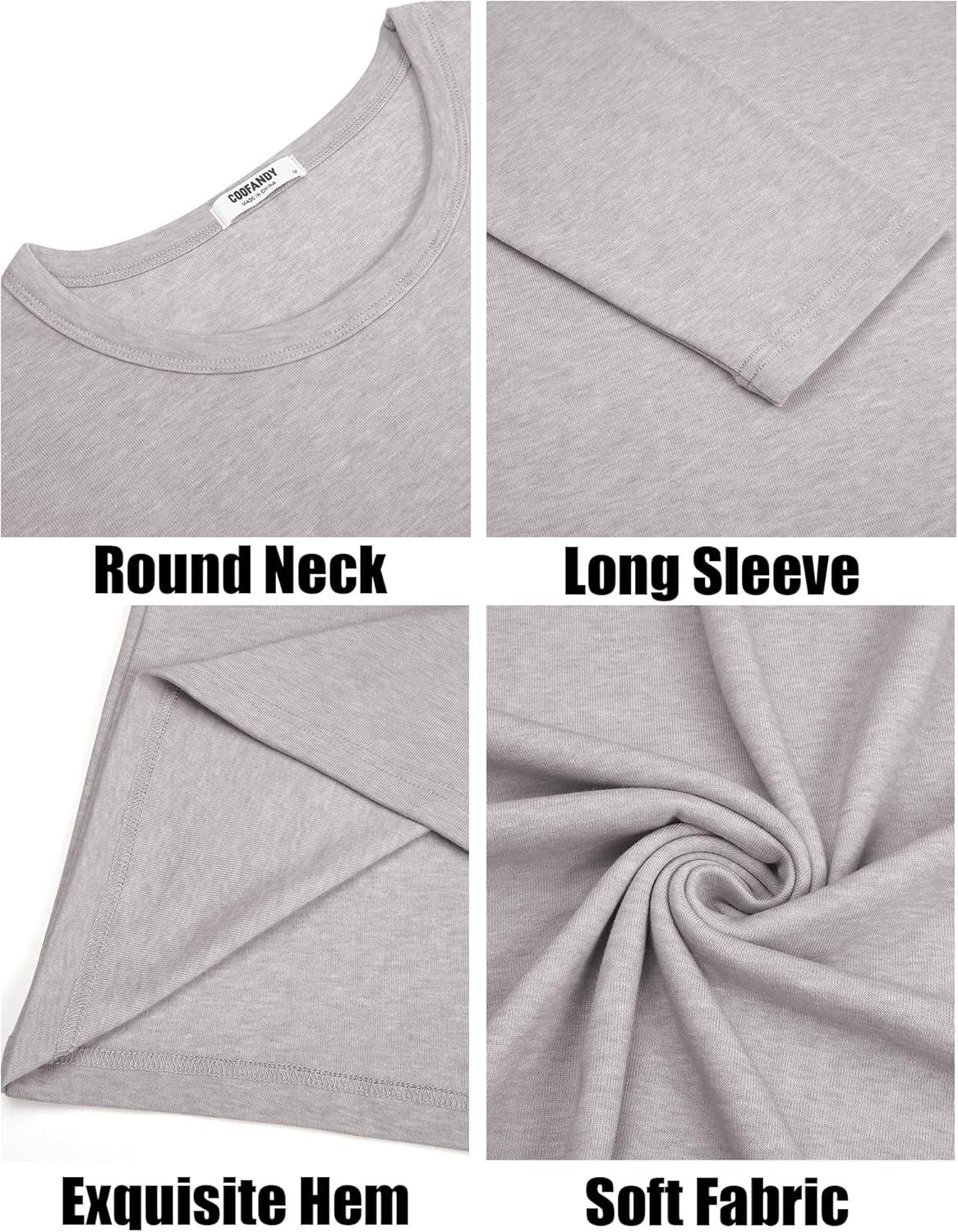 COOFANDY Men’s Long Sleeve Tee Shirts Crew Neck T Shirt Solid Casual Basic Tees Soft Stretch T-Shirts(Light Grey)