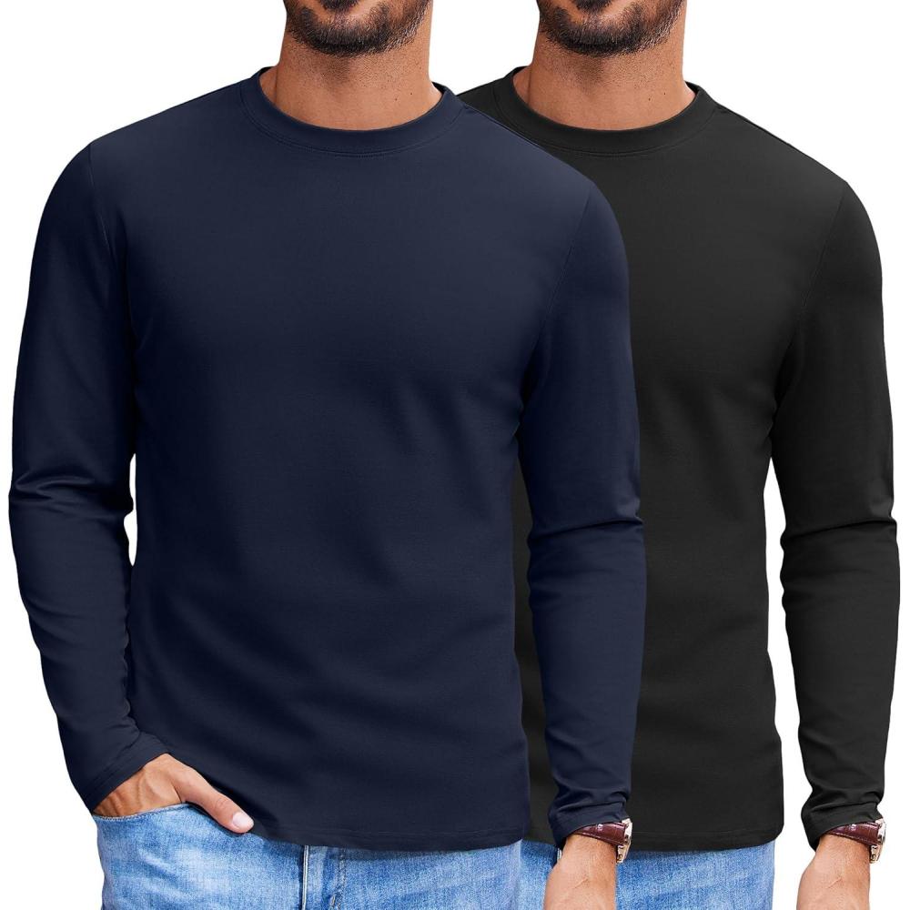 COOFANDY Mens Long Sleeve Tee Shirts Stretch Crew Neck Thermal Shirts Casual T Shirts for Men((2 Pack) Black+dark Blue)