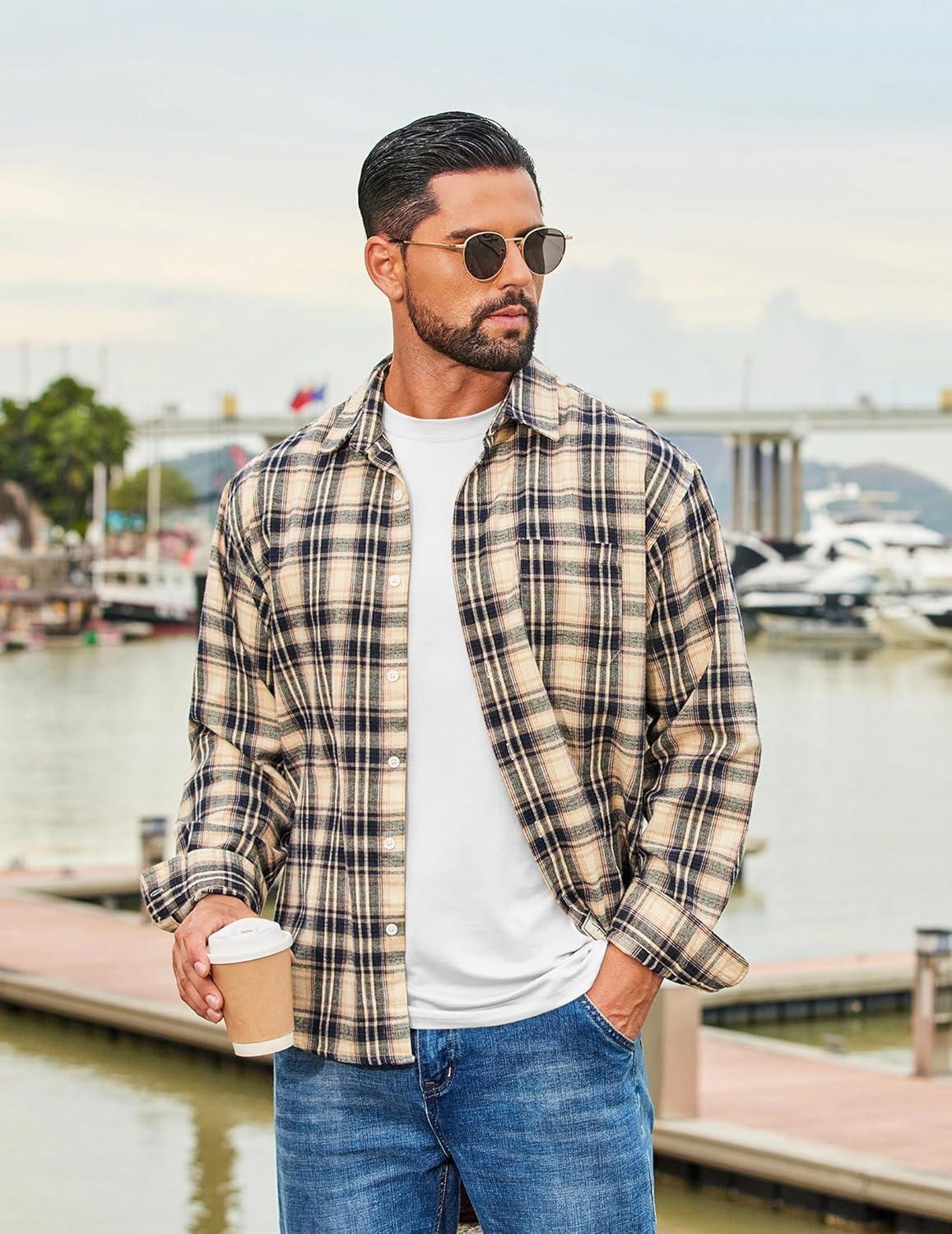 COOFANDY Mens Long Sleeve Tee Shirts Stretch Crew Neck Thermal Shirts Casual T Shirts for Men(A-white)