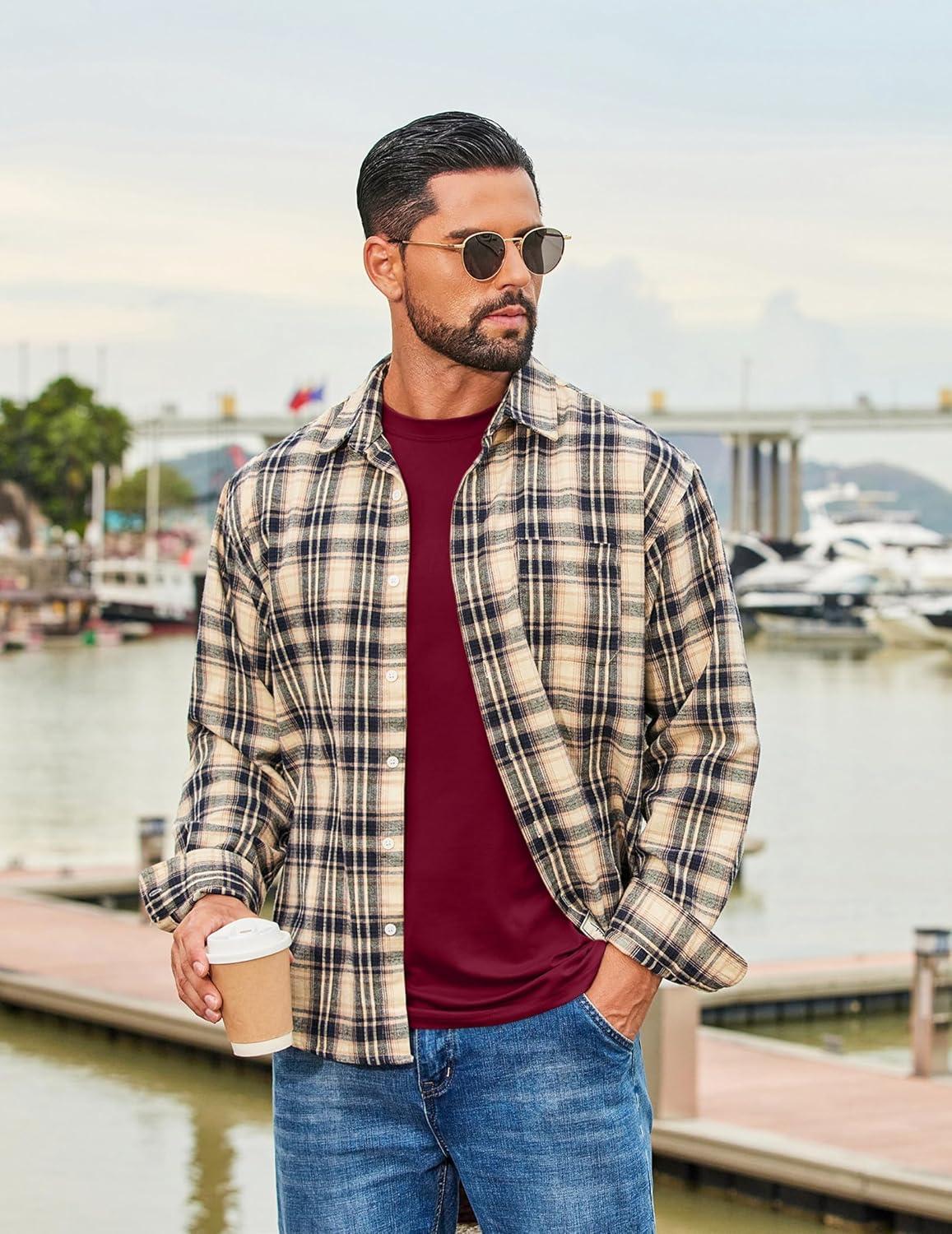 COOFANDY Mens Long Sleeve Tee Shirts Stretch Crew Neck Thermal Shirts Casual T Shirts for Men(Wine Red)