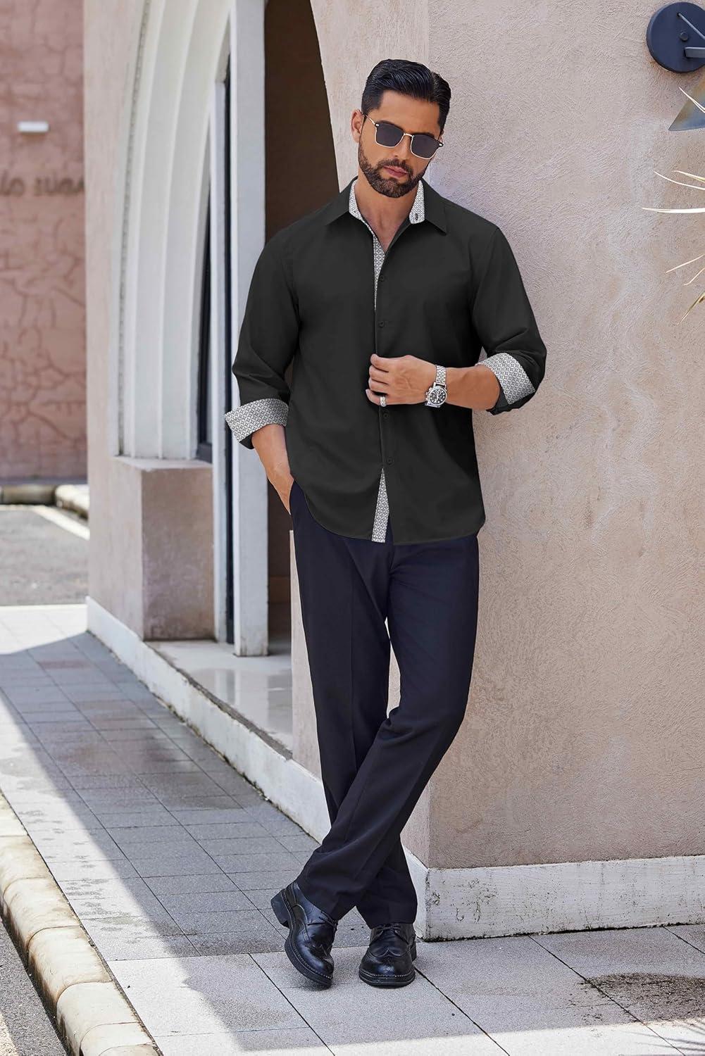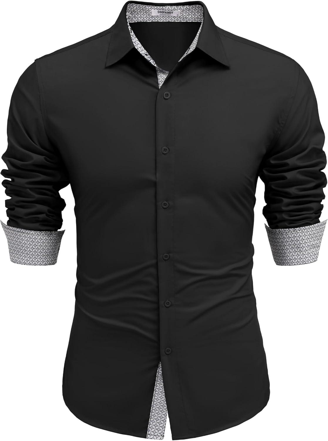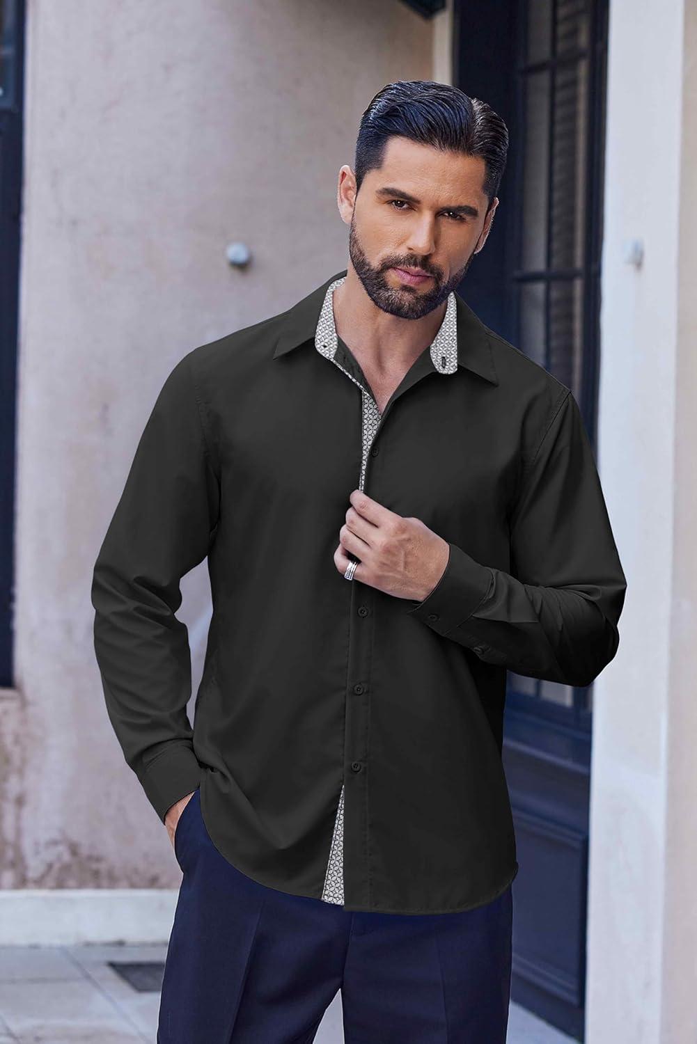 COOFANDY Men’s Long Sleeve Wrinkle Free Dress Shirts Inner Contrast Business Casual Button Down Shirt(Black/Gold)