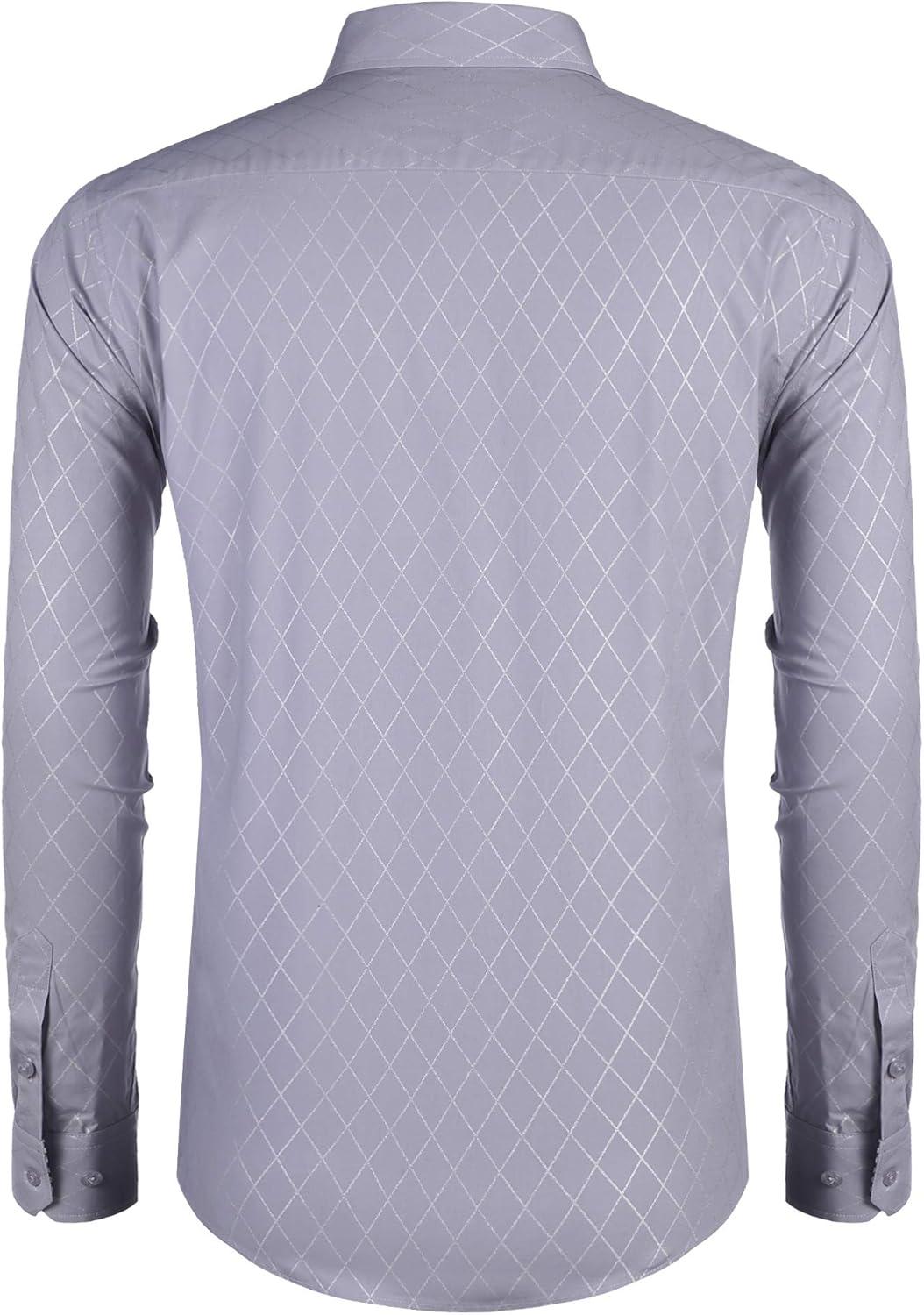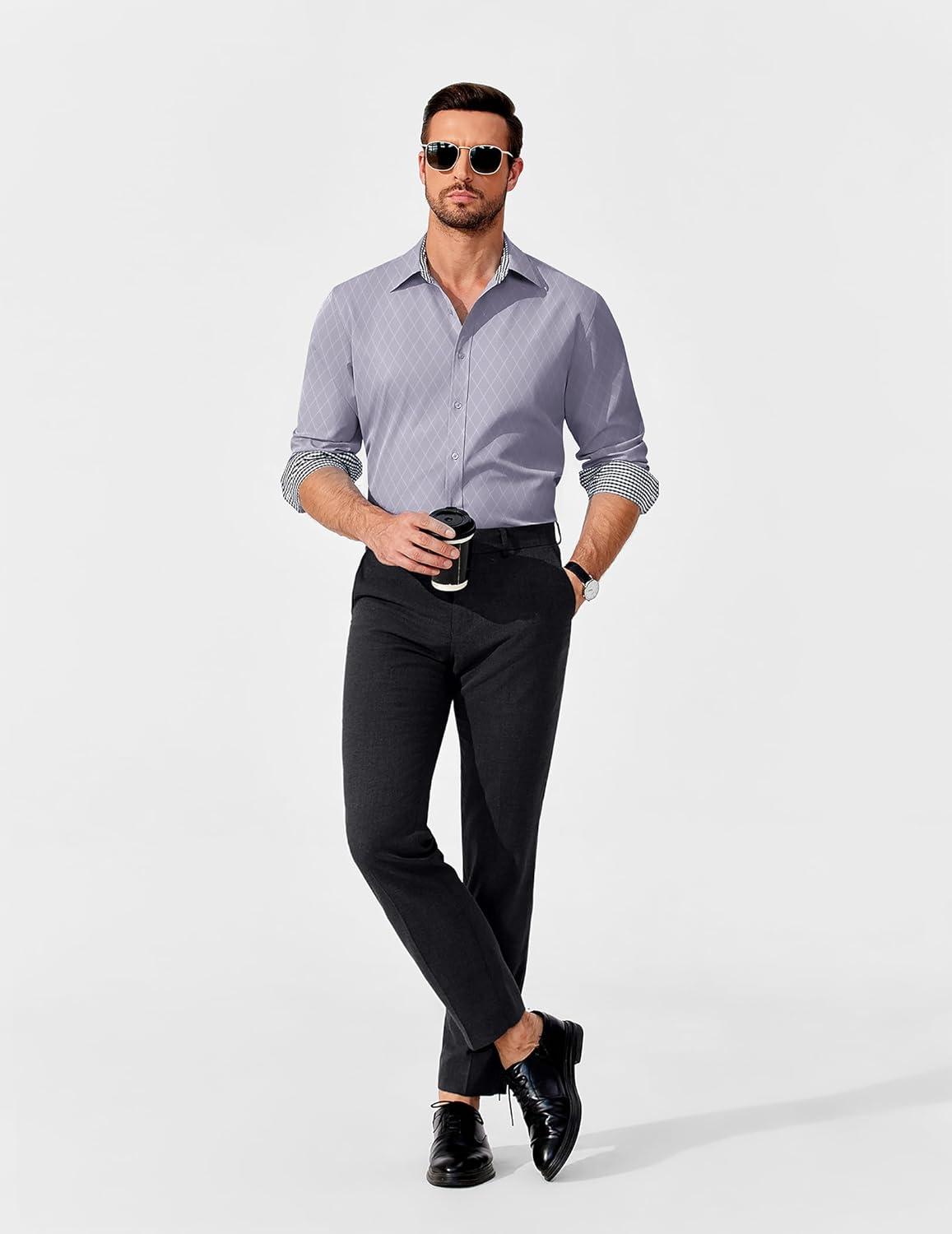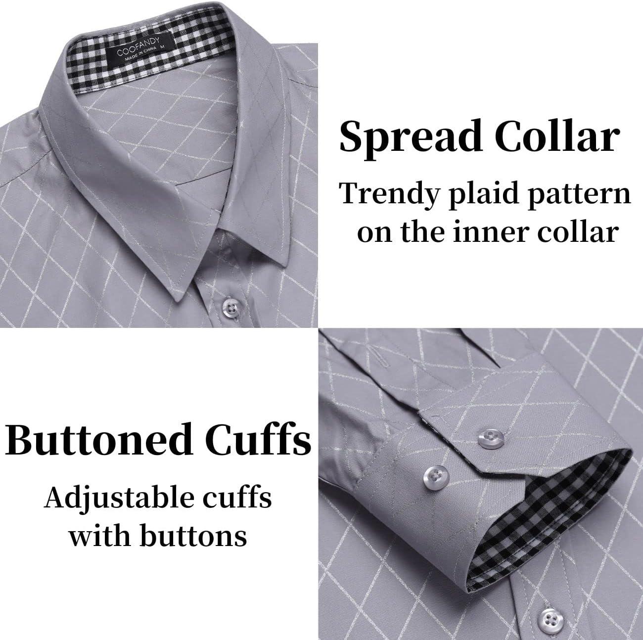 COOFANDY Men’s Long Sleeve Wrinkle Free Dress Shirts Inner Contrast Business Casual Button Down Shirt(Light Grey)