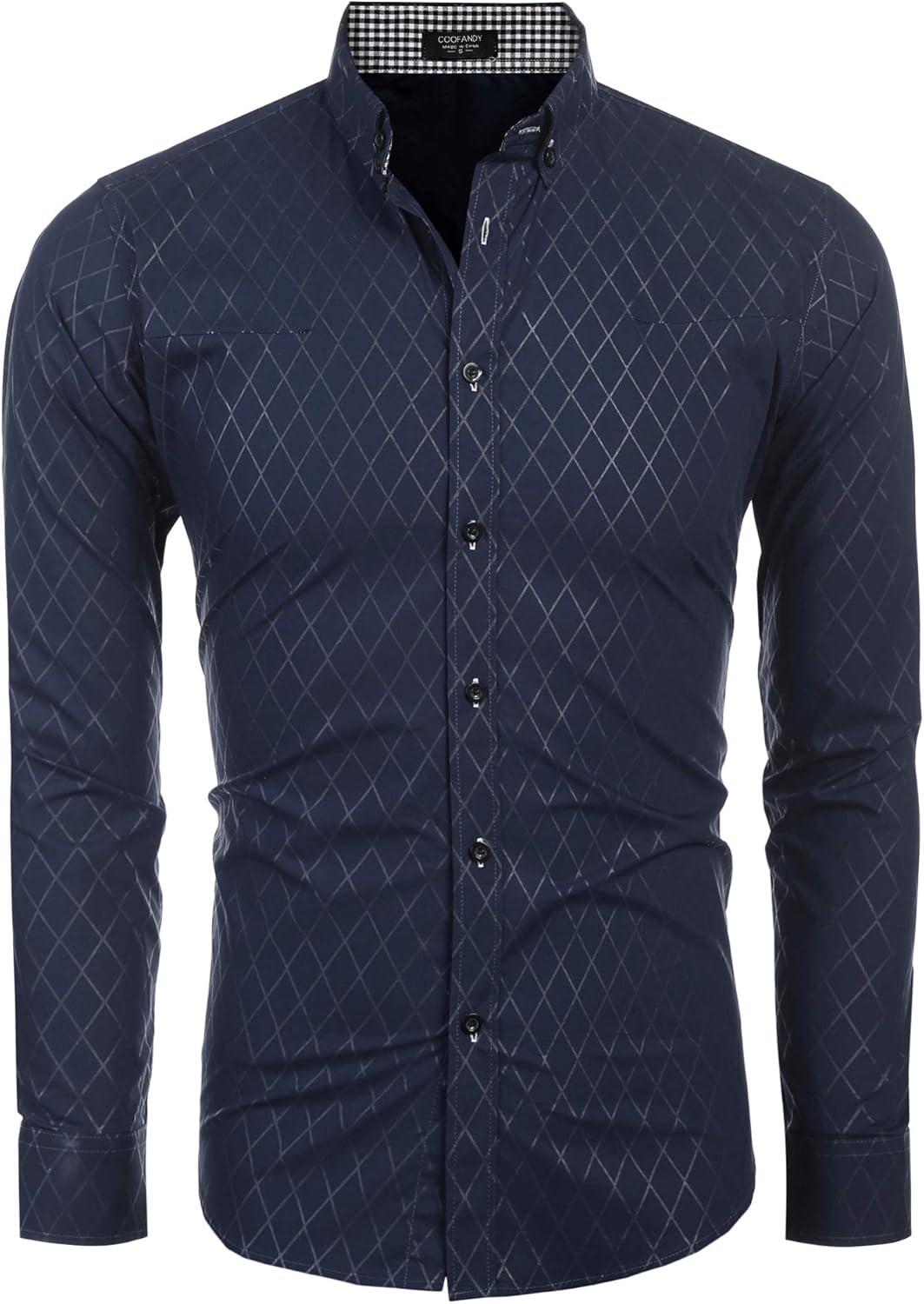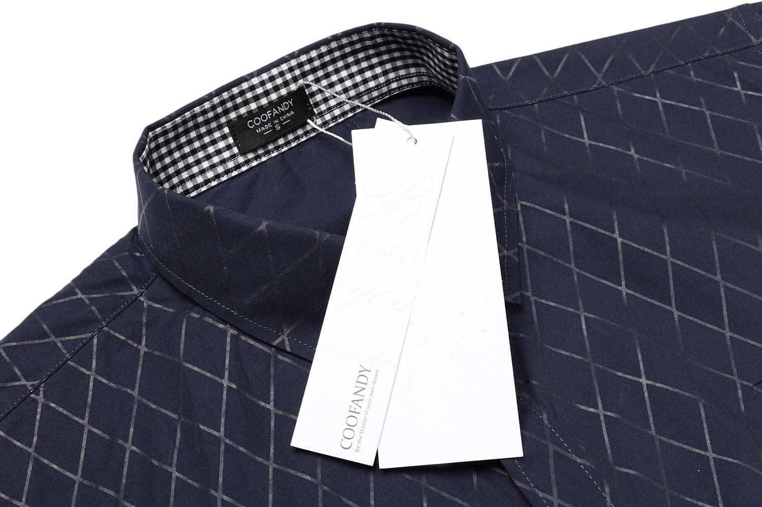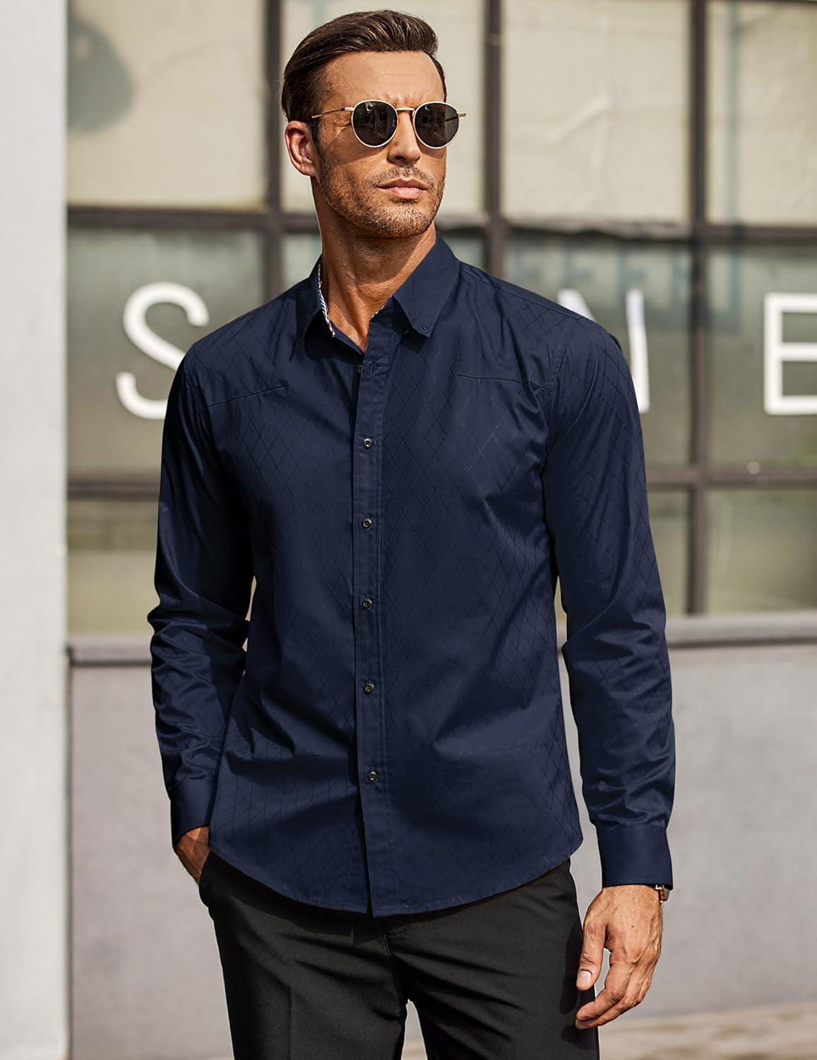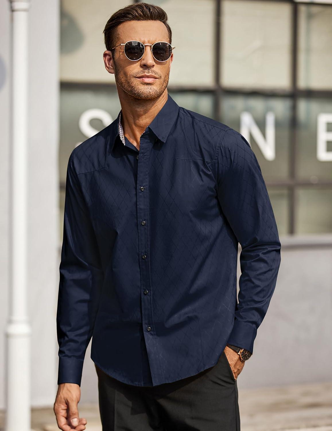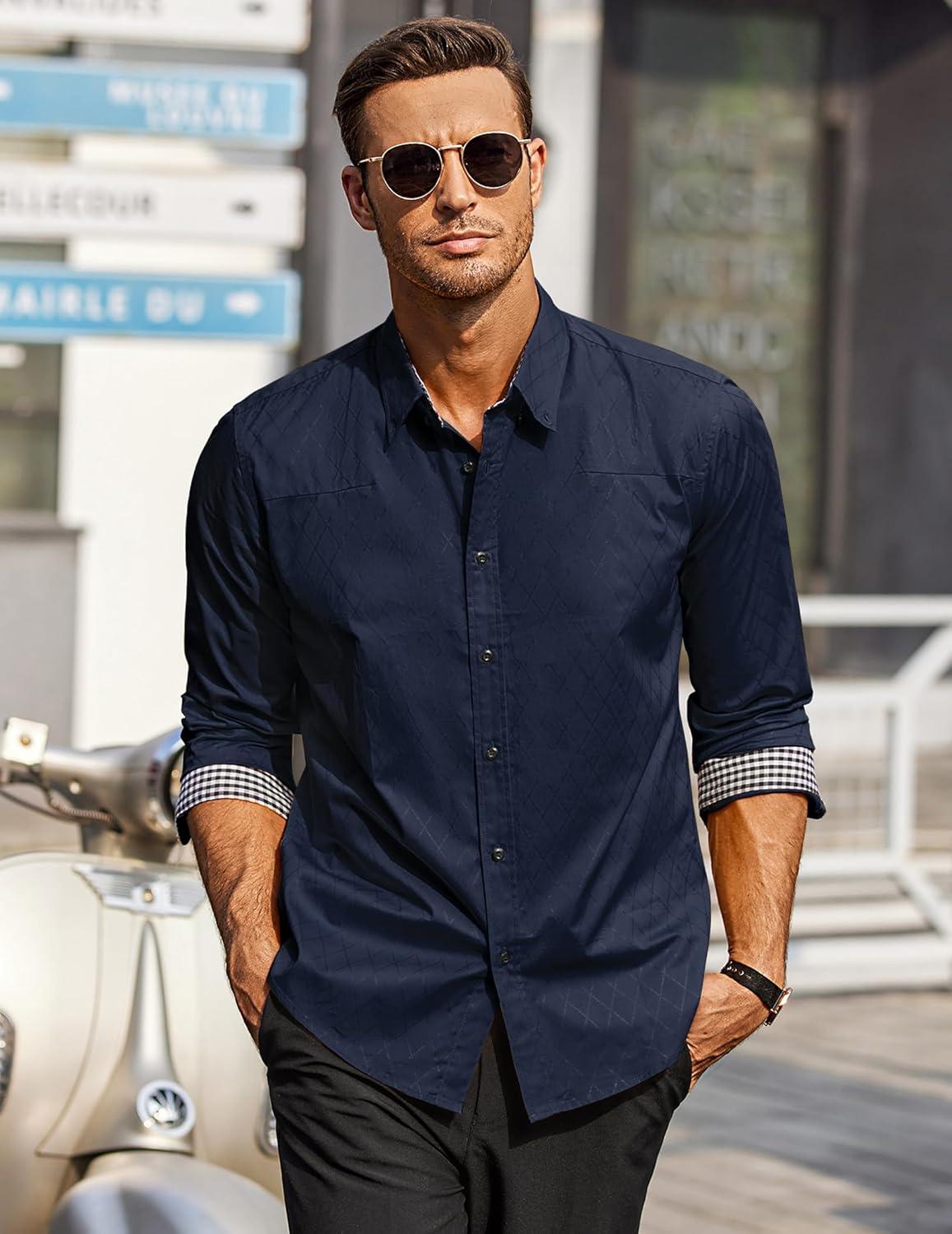 COOFANDY Men’s Long Sleeve Wrinkle Free Dress Shirts Inner Contrast Business Casual Button Down Shirt(Navy Blue)