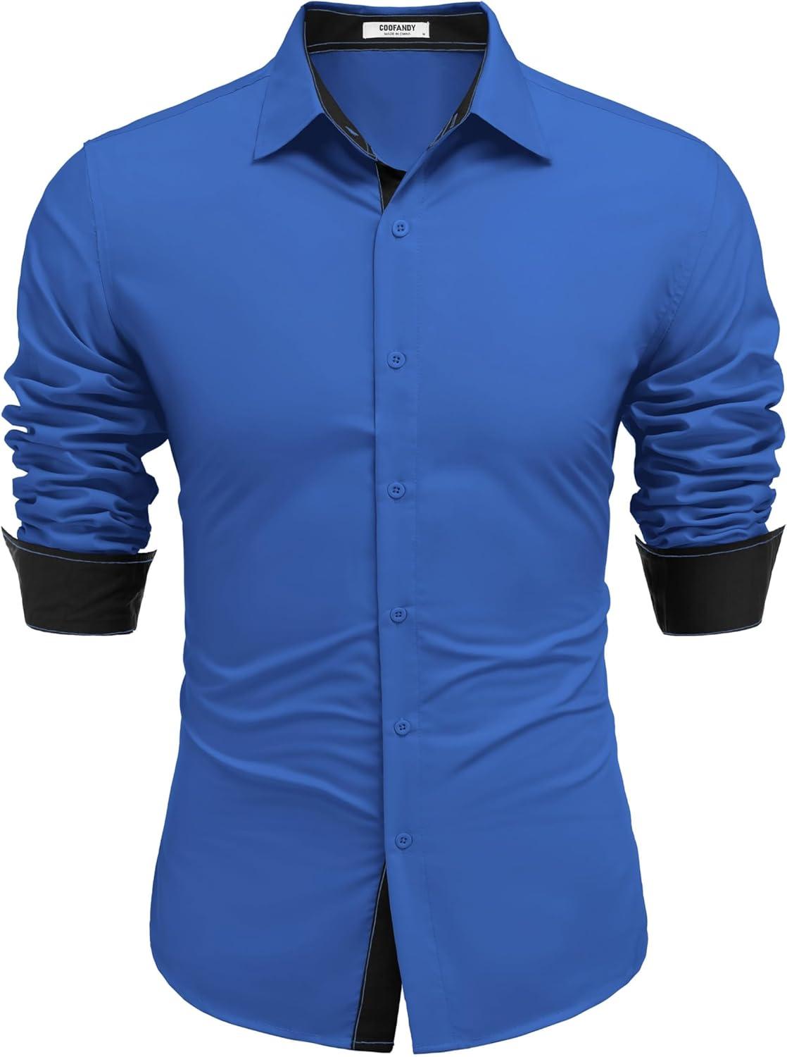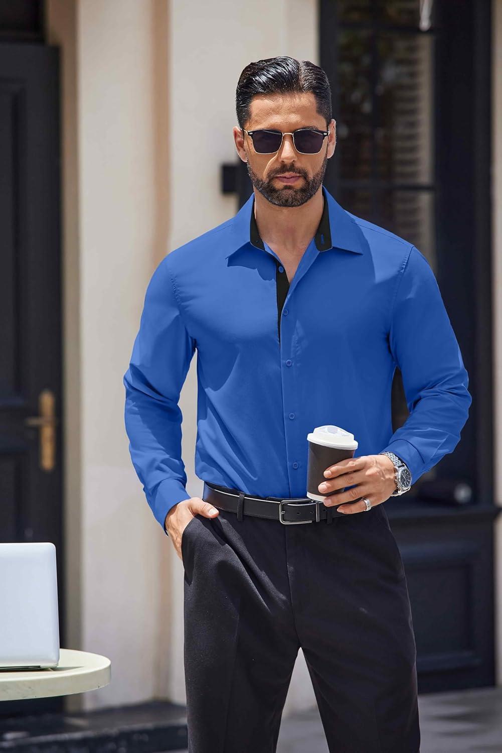 COOFANDY Men’s Long Sleeve Wrinkle Free Dress Shirts Inner Contrast Business Casual Button Down Shirt(Royal Blue)
