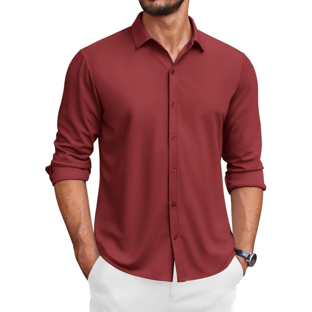 COOFANDY Men’s Long Sleeve Wrinkle Free Shirts Button Down Casual Stretch Dress Shirt(Wine Red)