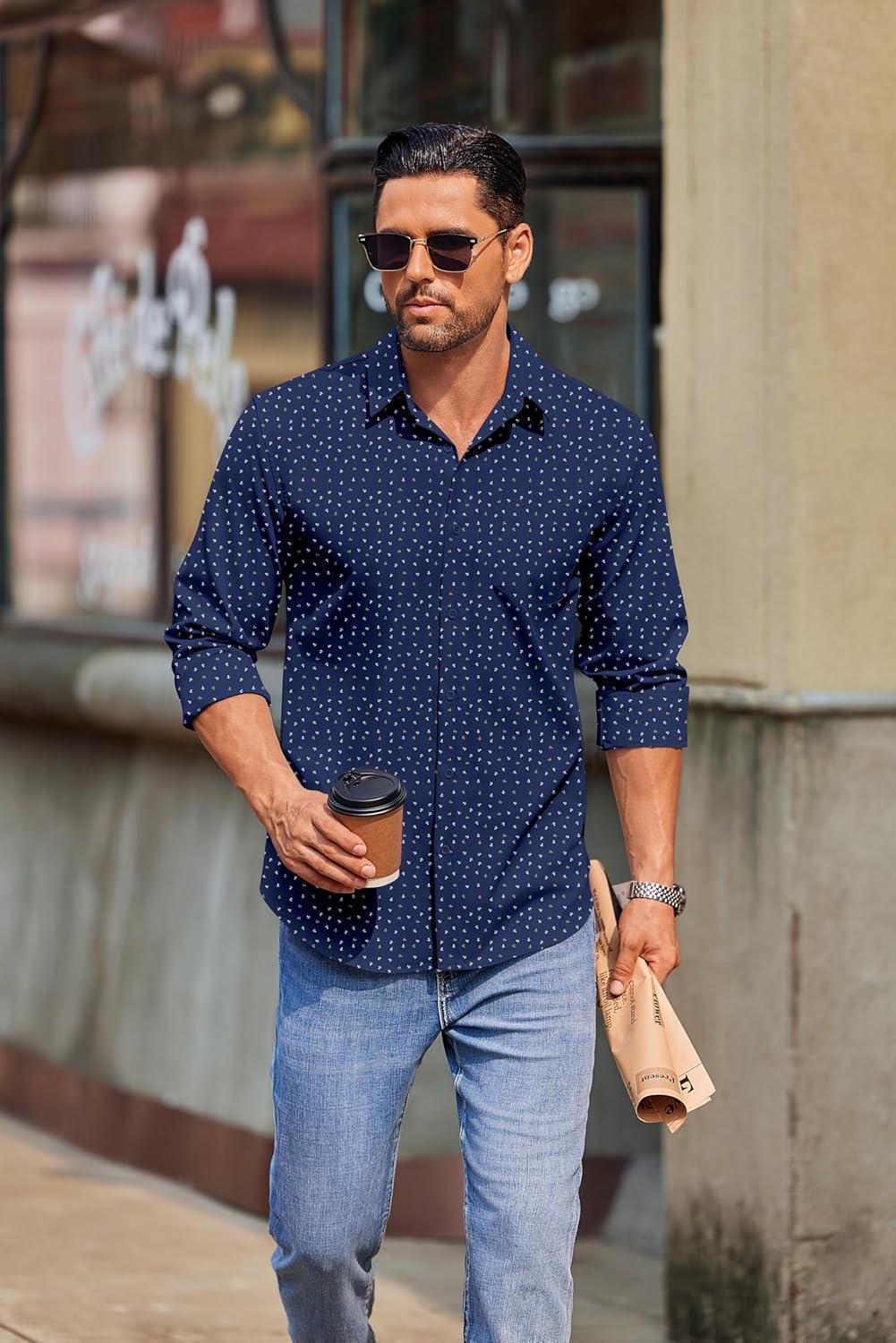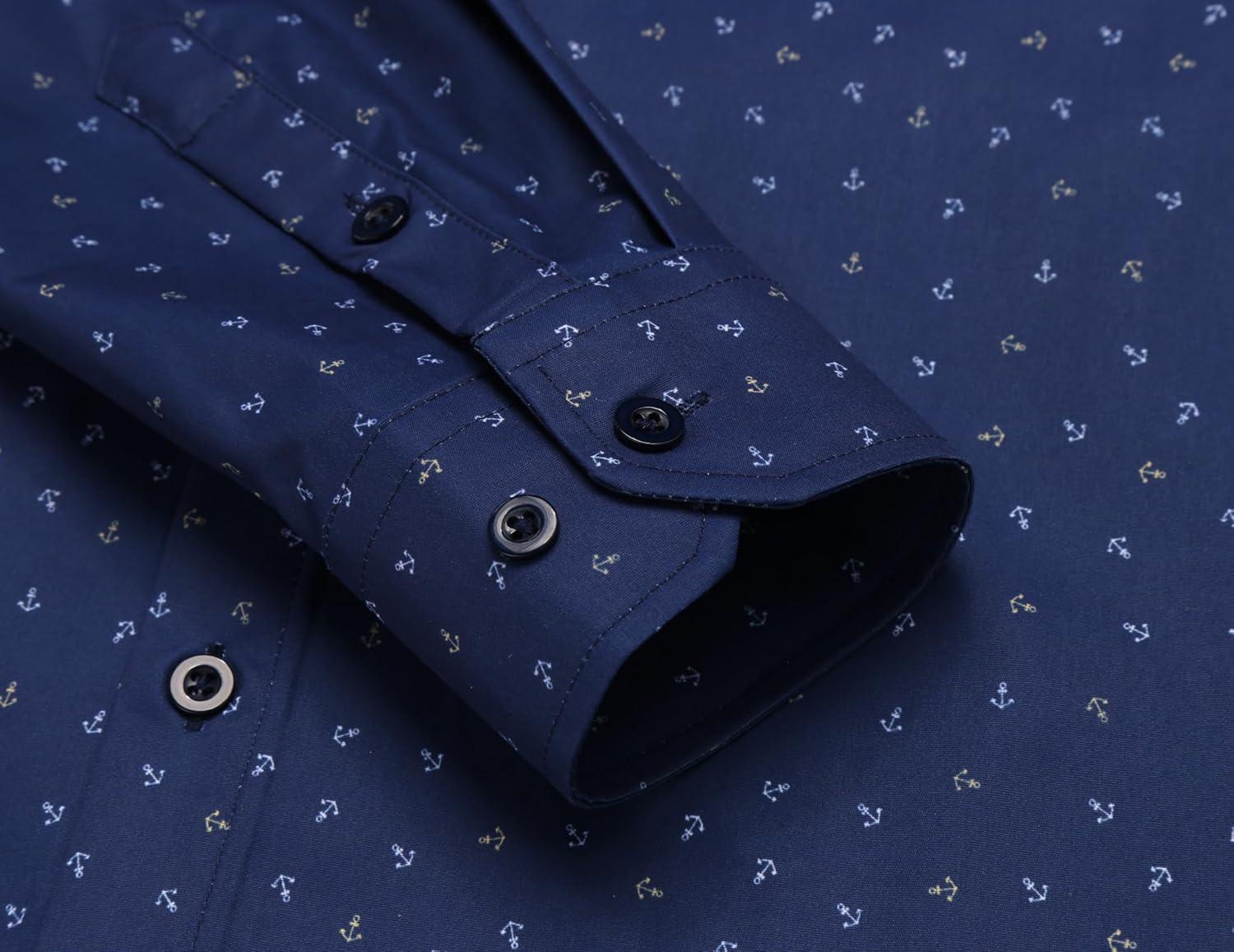 COOFANDY Mens Long Sleeve Wrinkle Free Shirts Stretch Dress Shirts Regular Fit Button Down Shirt(Anchor-navy)