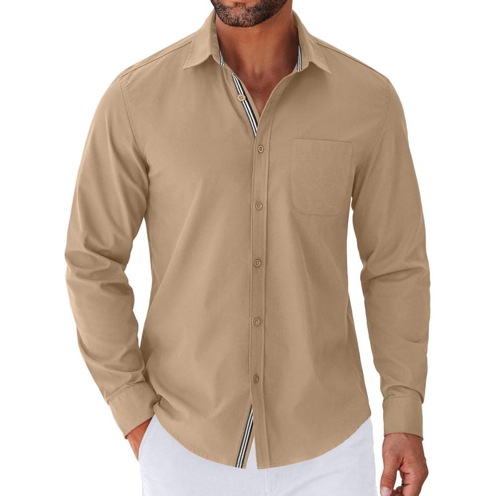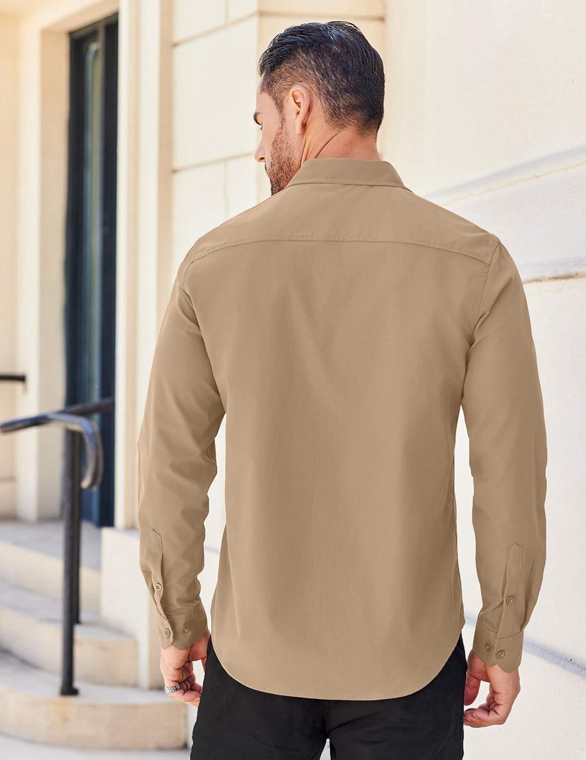 COOFANDY Mens Long Sleeve Wrinkle Free Shirts Stretch Dress Shirts Regular Fit Button Down Shirt(Khaki)
