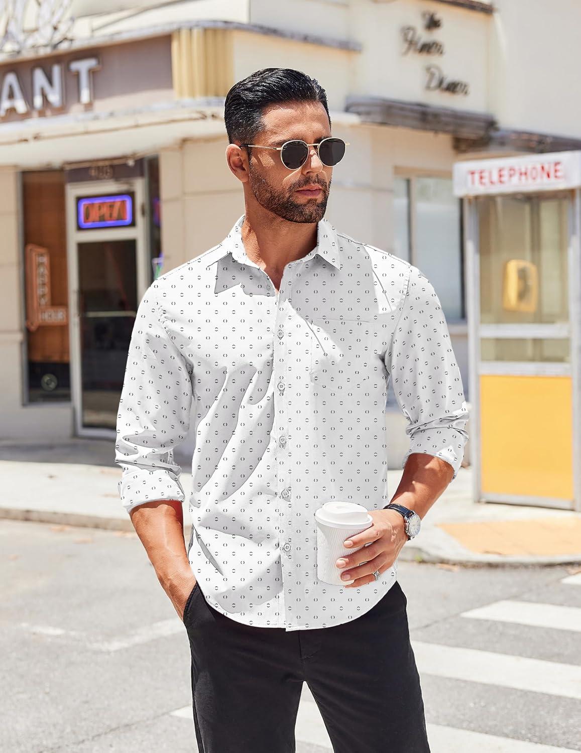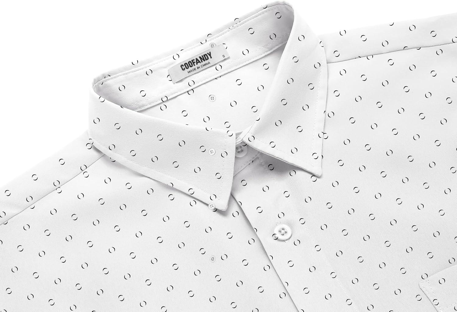 COOFANDY Mens Long Sleeve Wrinkle Free Shirts Stretch Dress Shirts Regular Fit Button Down Shirt(White -Semicircle)