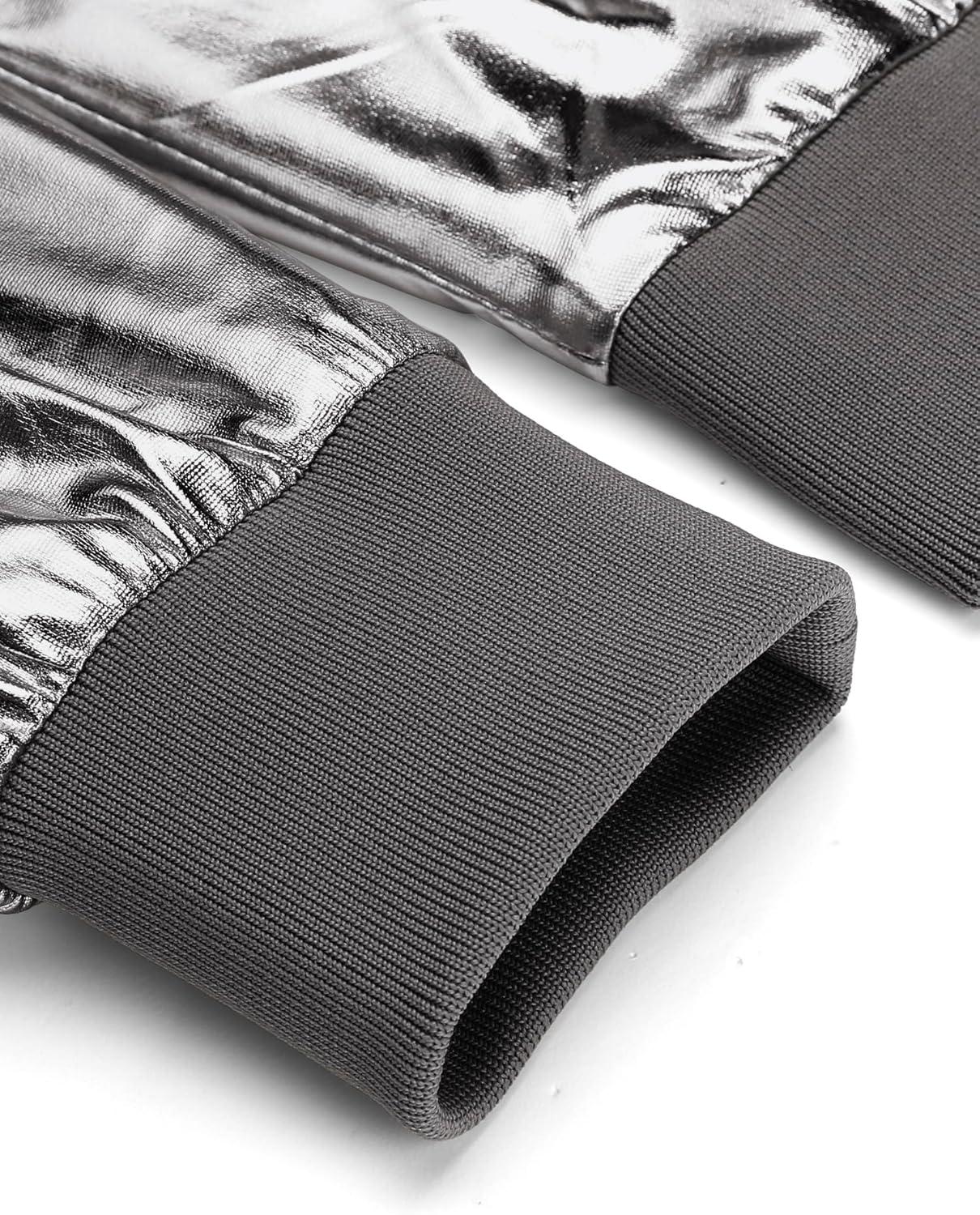 COOFANDY Men’s Metallic Jacket 70s Disco Dance Party Costume Shiny Varsity Zipper Baseball Bomber Jacket(Luxurious Grey)