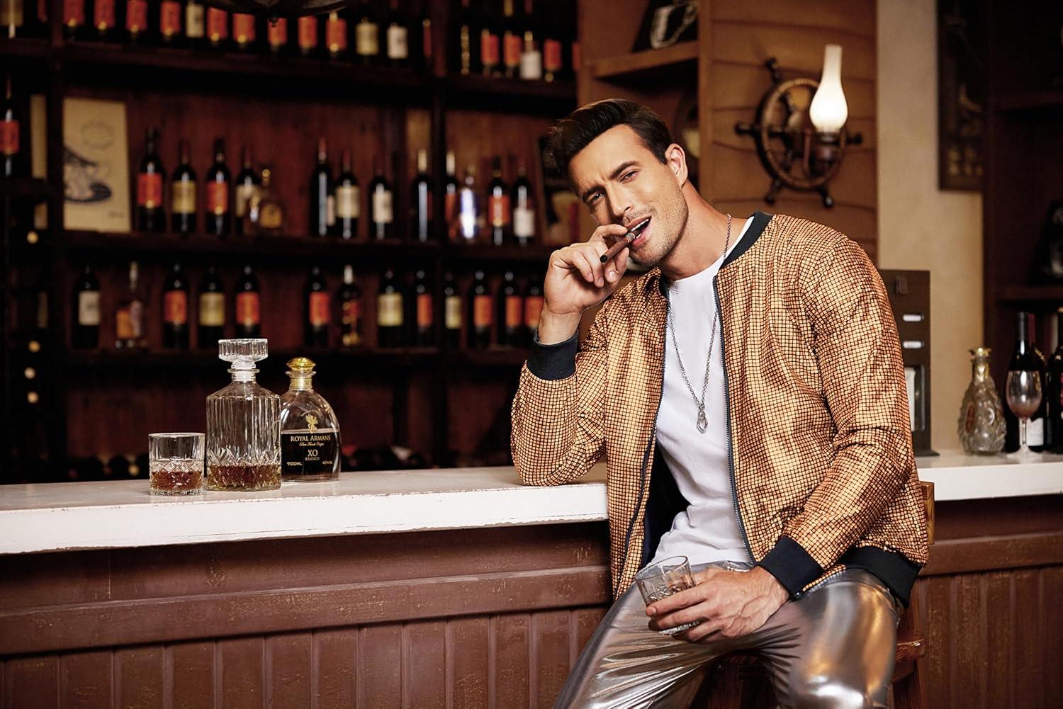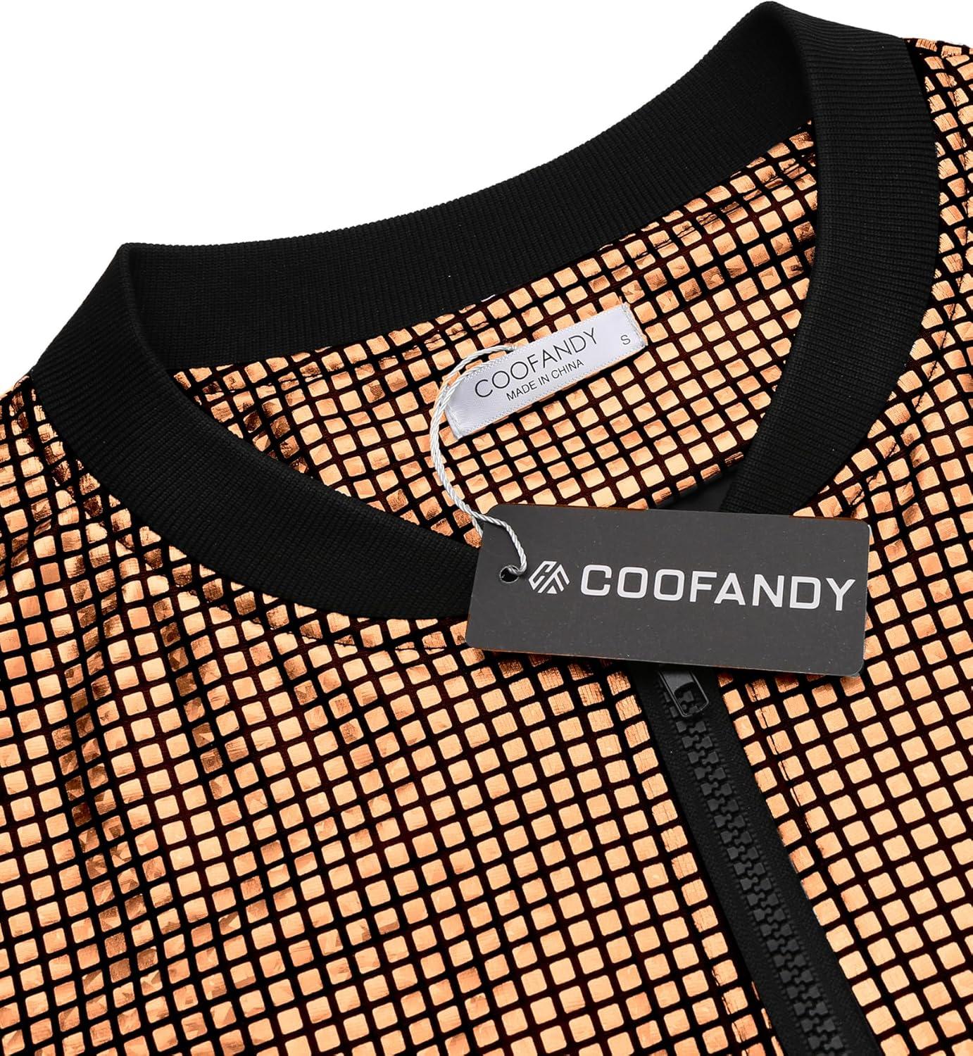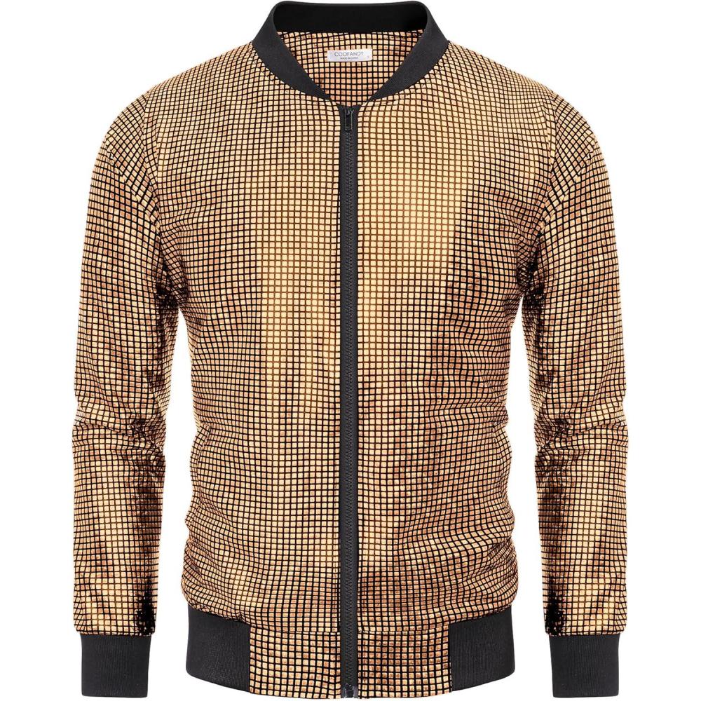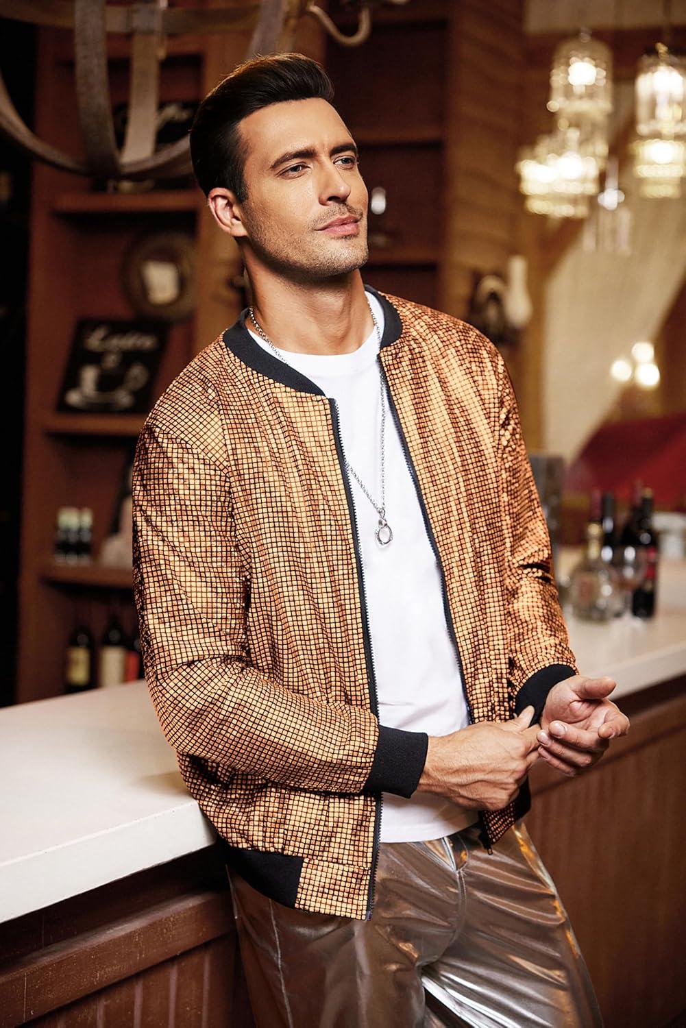 COOFANDY Men’s Metallic Jacket 70s Disco Dance Party Costume Shiny Varsity Zipper Baseball Bomber Jacket(Rose Gold)