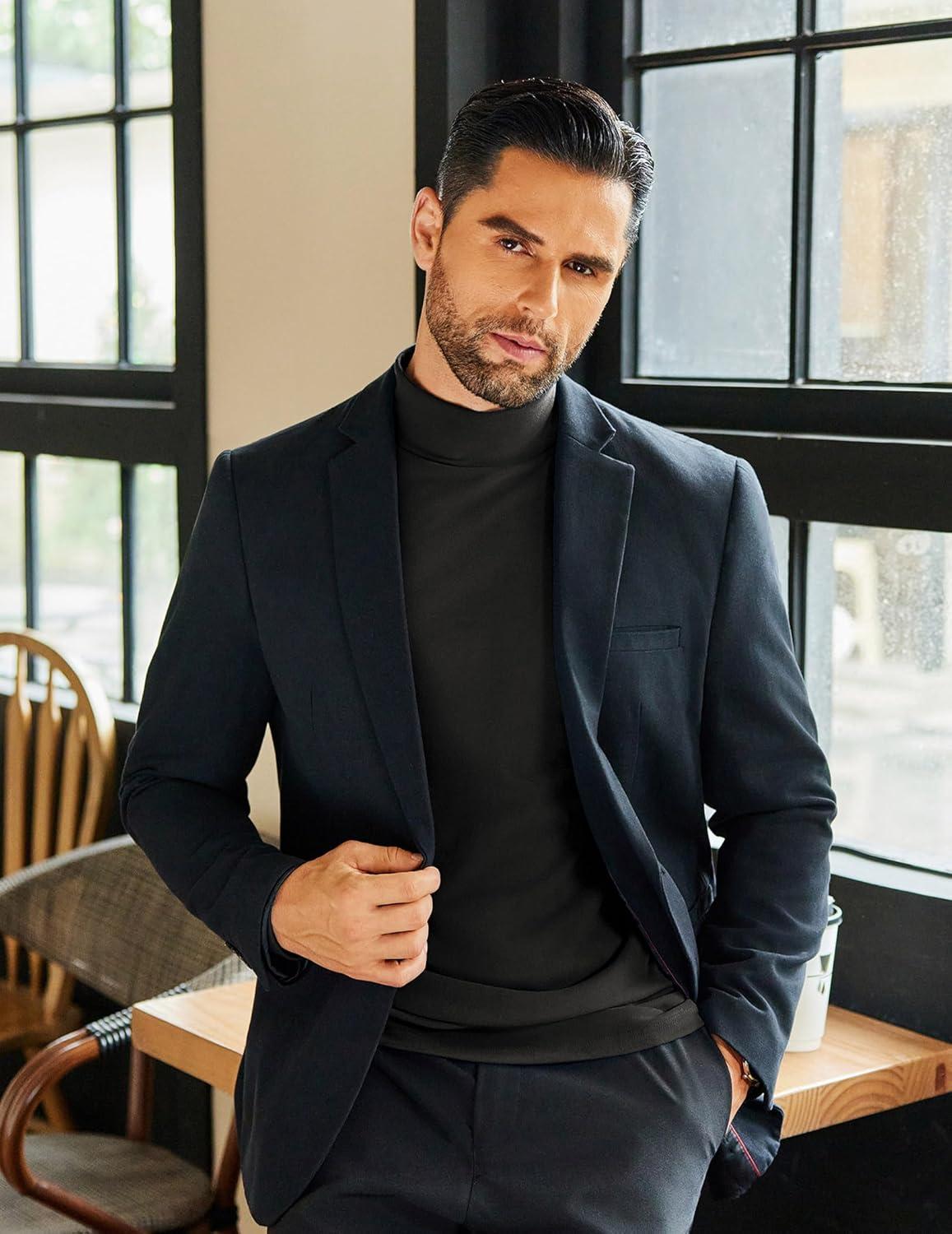 COOFANDY Mens Mock Neck Shirts Fleece Long Sleeve Tops Basic Pullover T-Shirts(2 Pcs-black/Brown)