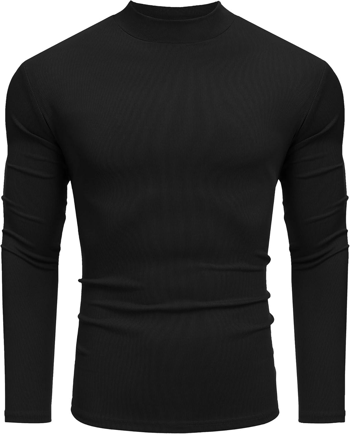 COOFANDY Men’s Mock Turtleneck Long Sleeve Shirts Slim Fit Basic T-Shirt Lightweight Ribbed Pullover Sweater(1 Pack-black)