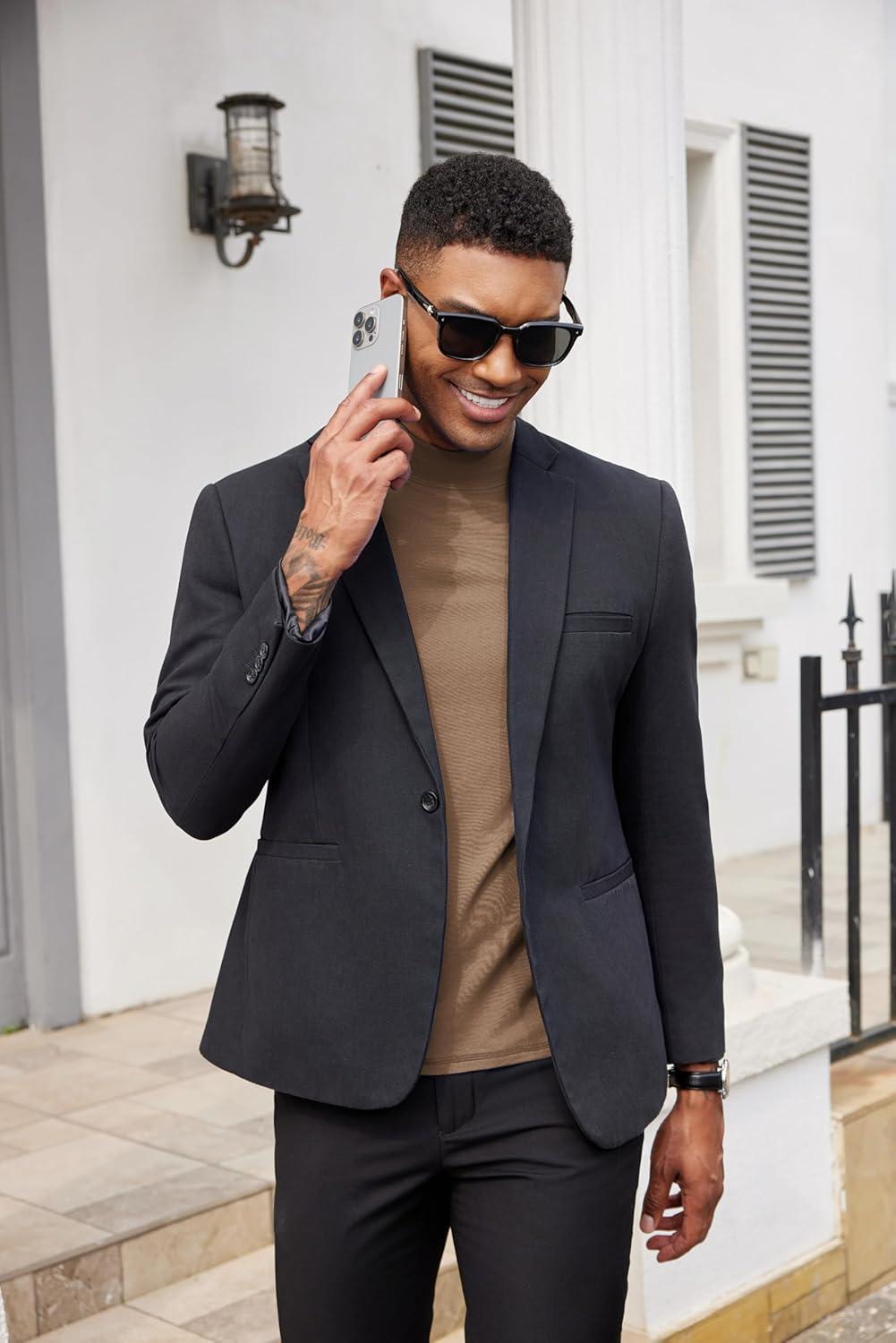 COOFANDY Mens Mock Turtleneck Shirts Casual Premium Cotton Short Sleeve Shirt 2025 Basic Half Neck T-Shirts(Khaki)