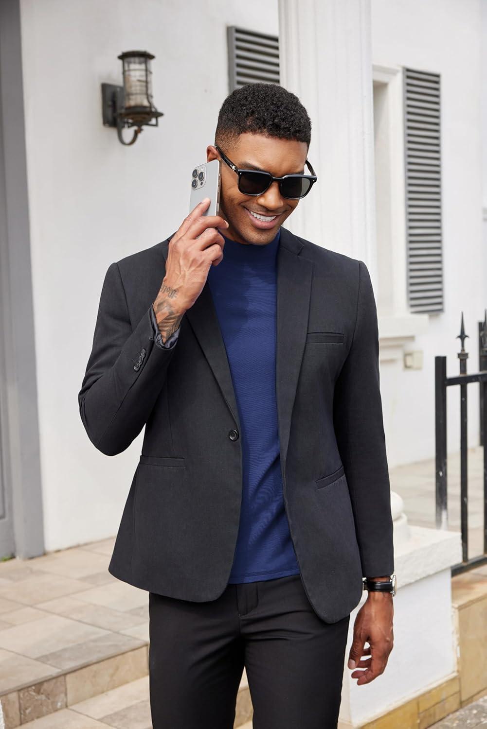 COOFANDY Mens Mock Turtleneck Shirts Casual Premium Cotton Short Sleeve Shirt 2025 Basic Half Neck T-Shirts(Navy Blue)