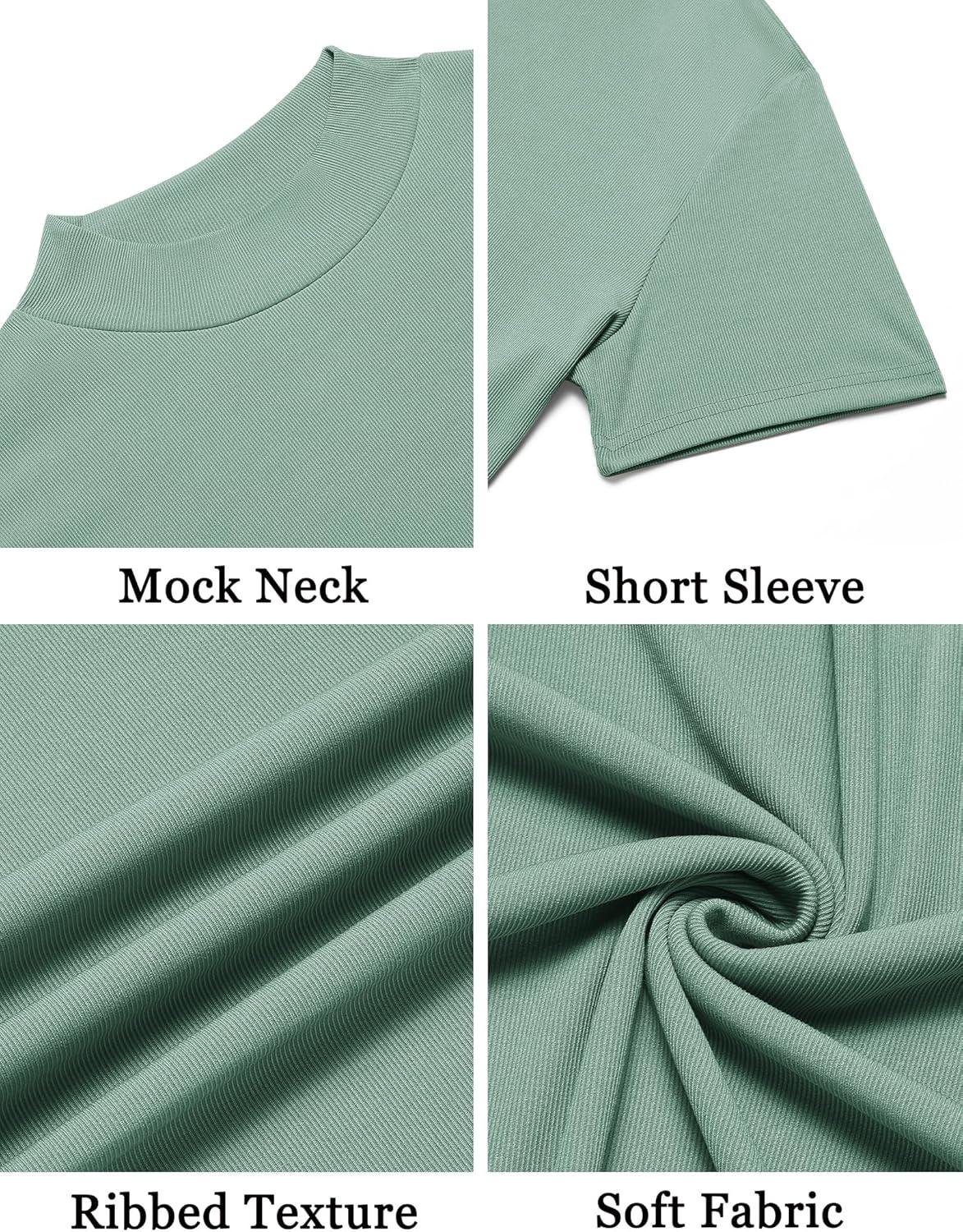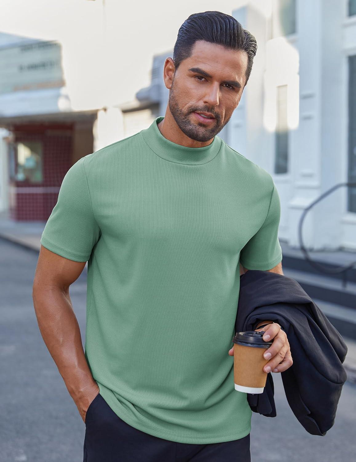 COOFANDY Mens Mock Turtleneck Shirts Short Sleeve Casual Basic T-Shirts Ribbed Solid Pullover Tops(Gray Green)