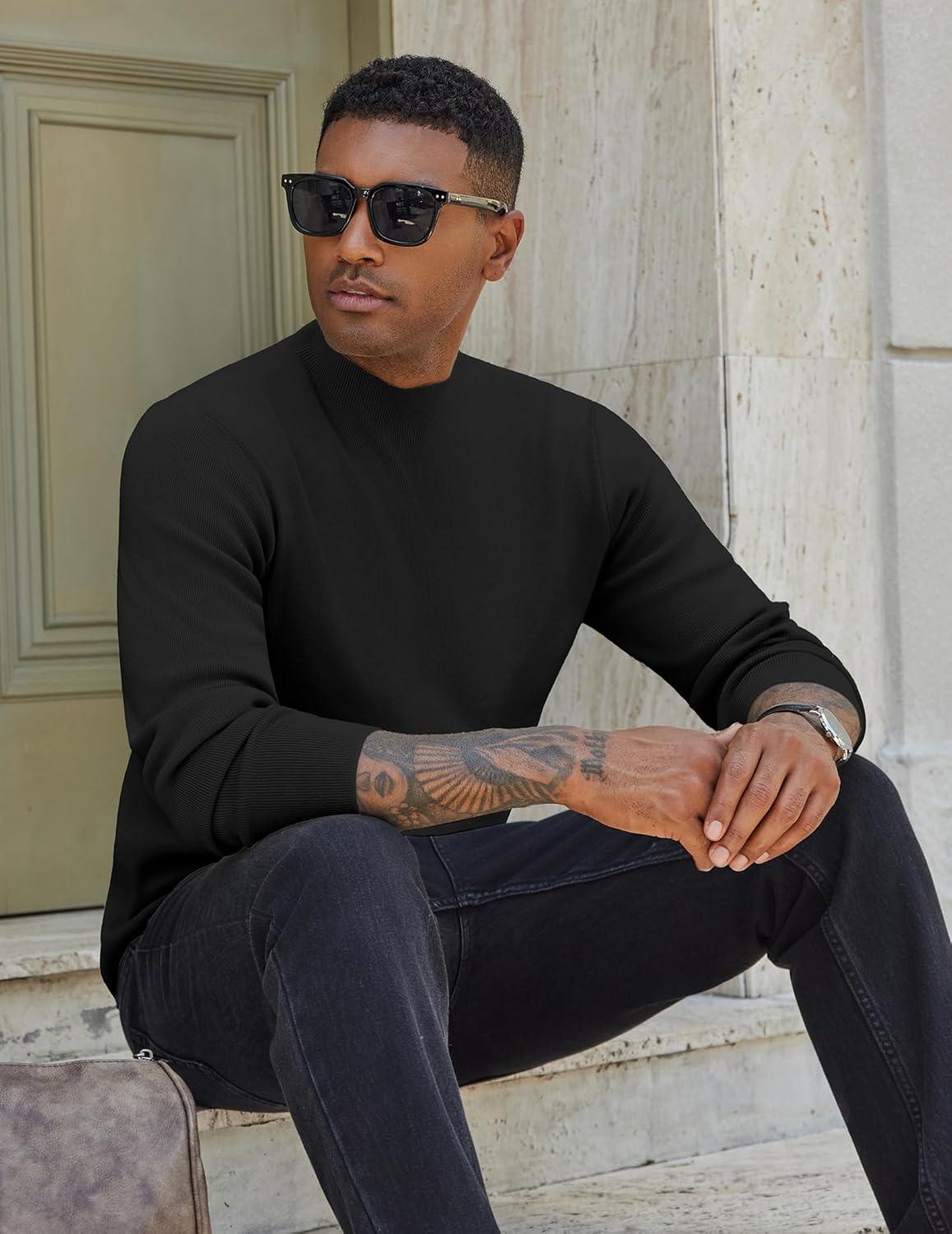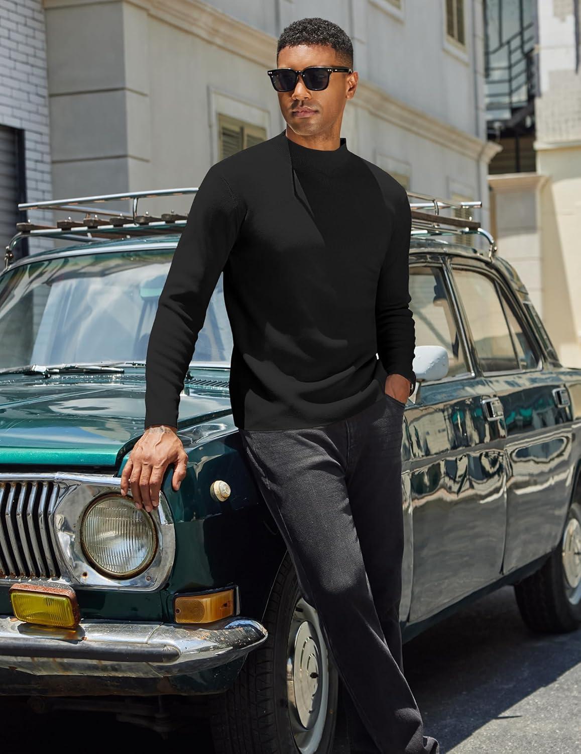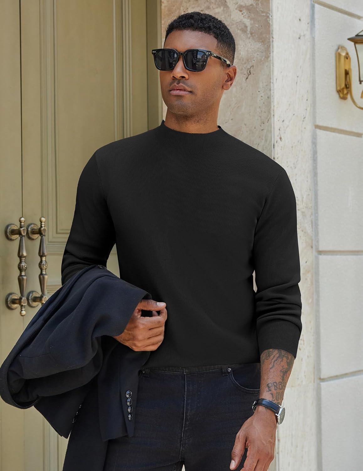 COOFANDY Mens Mock Turtleneck Sweater Long Sleeve Basic Thermal Undershirt Slim Fit Lightweight Pullover Sweaters(Black)