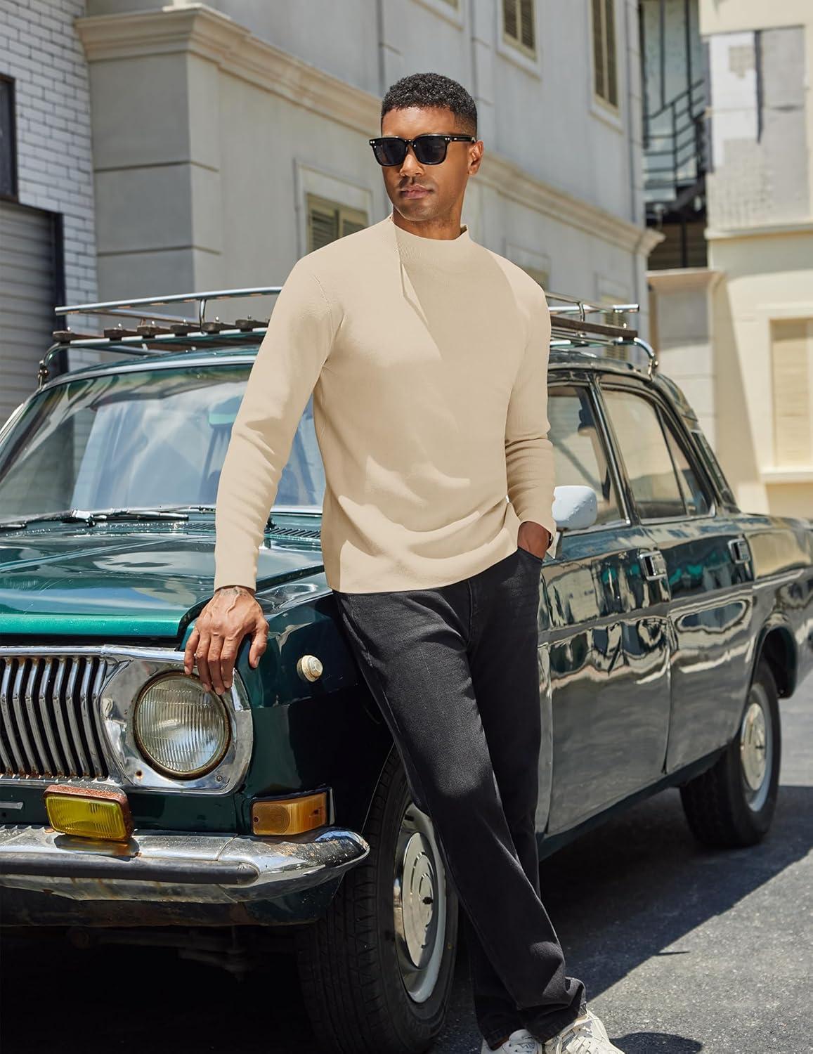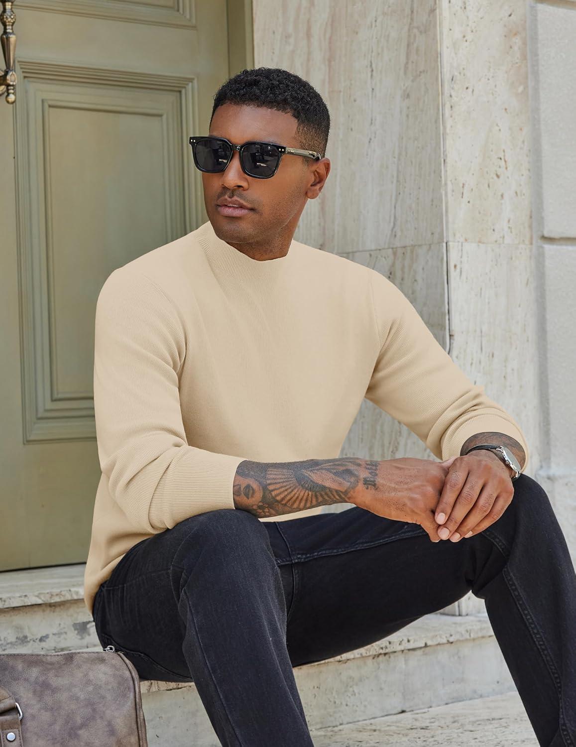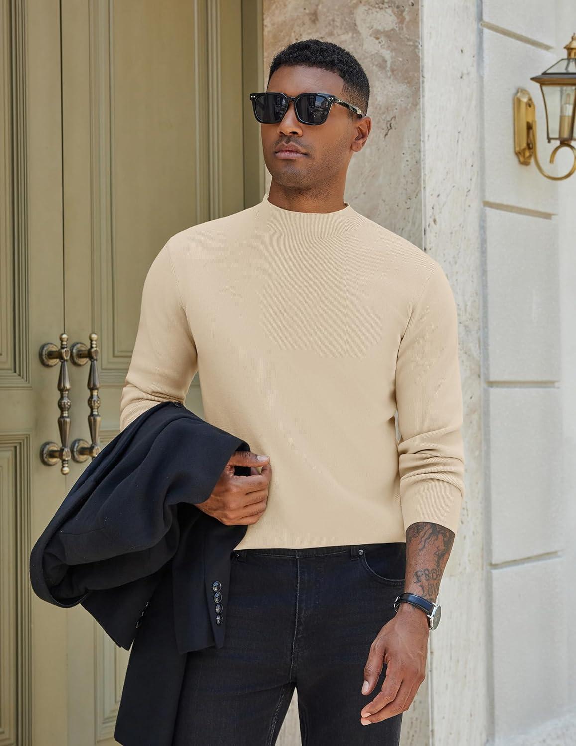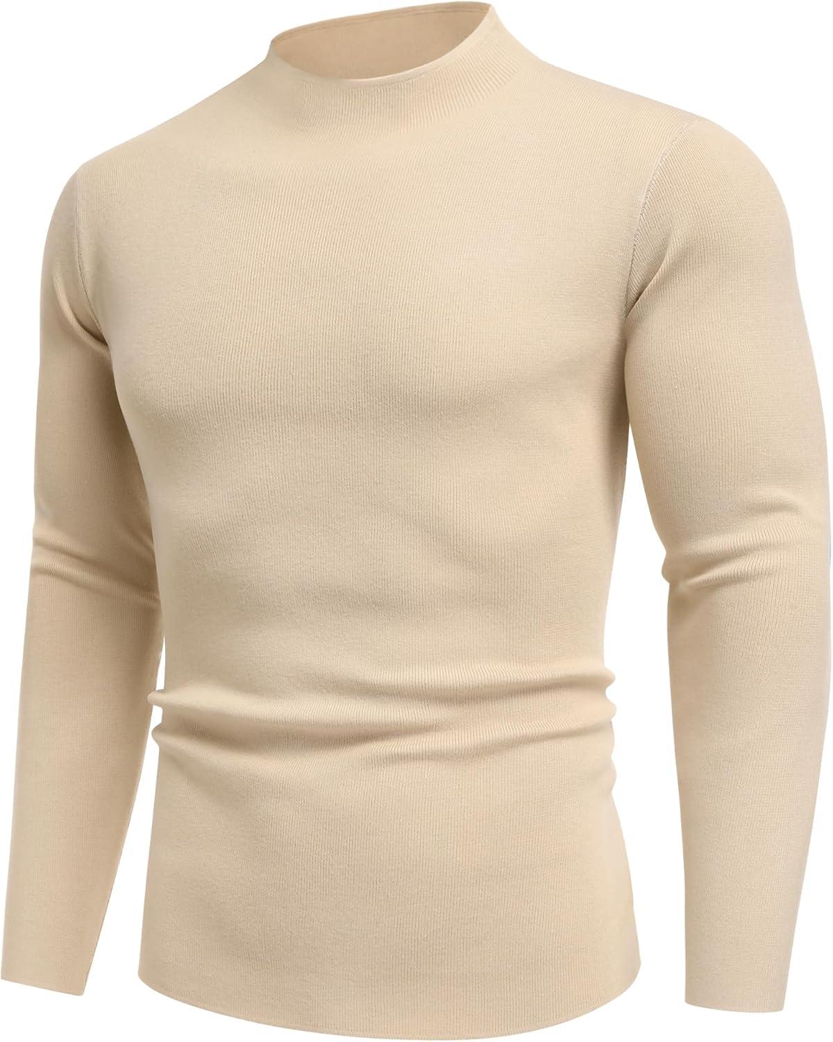 COOFANDY Mens Mock Turtleneck Sweater Long Sleeve Basic Thermal Undershirt Slim Fit Lightweight Pullover Sweaters(Khaki)