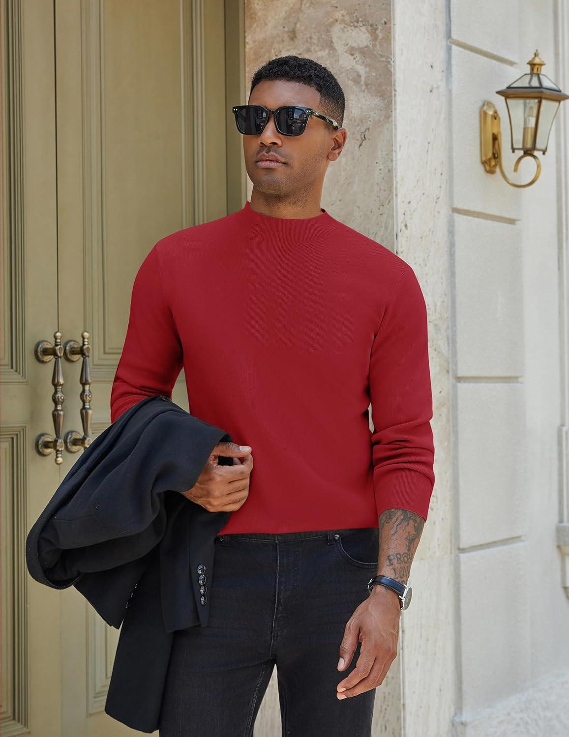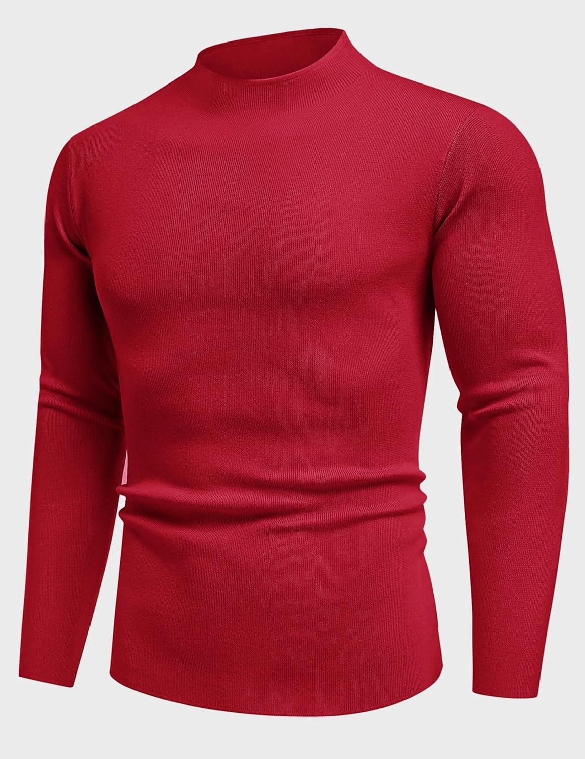 COOFANDY Mens Mock Turtleneck Sweater Long Sleeve Basic Thermal Undershirt Slim Fit Lightweight Pullover Sweaters(Wine Red)