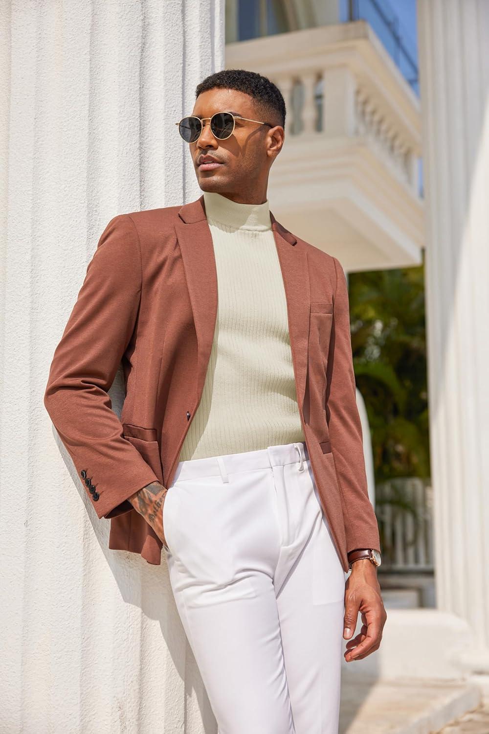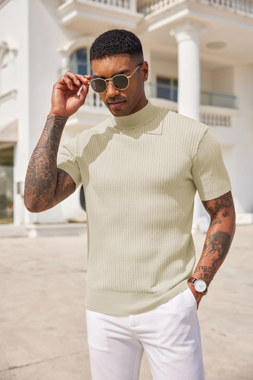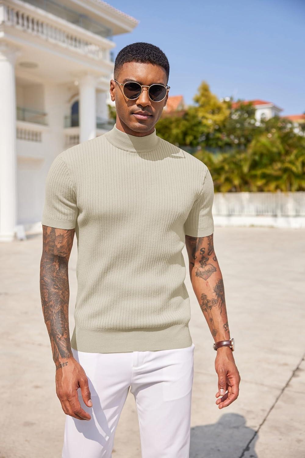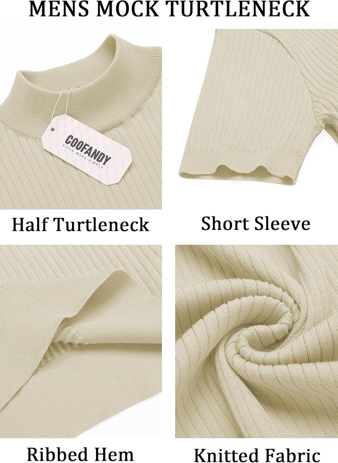 COOFANDY Men’s Mock Turtleneck Sweater Short Sleeve Casual Basic Tops Ribbed Knit Pullover Solid Tee(Apricot)