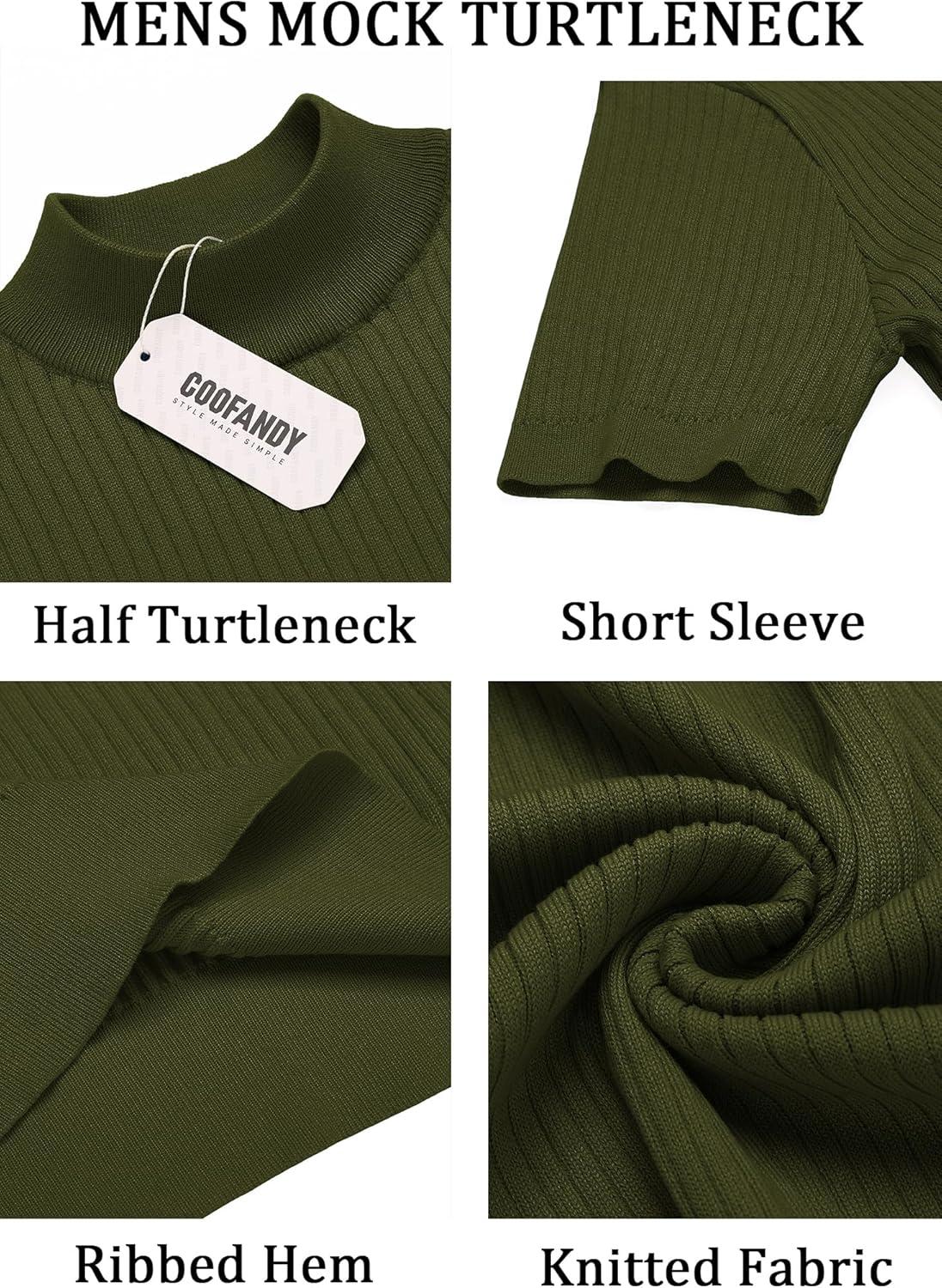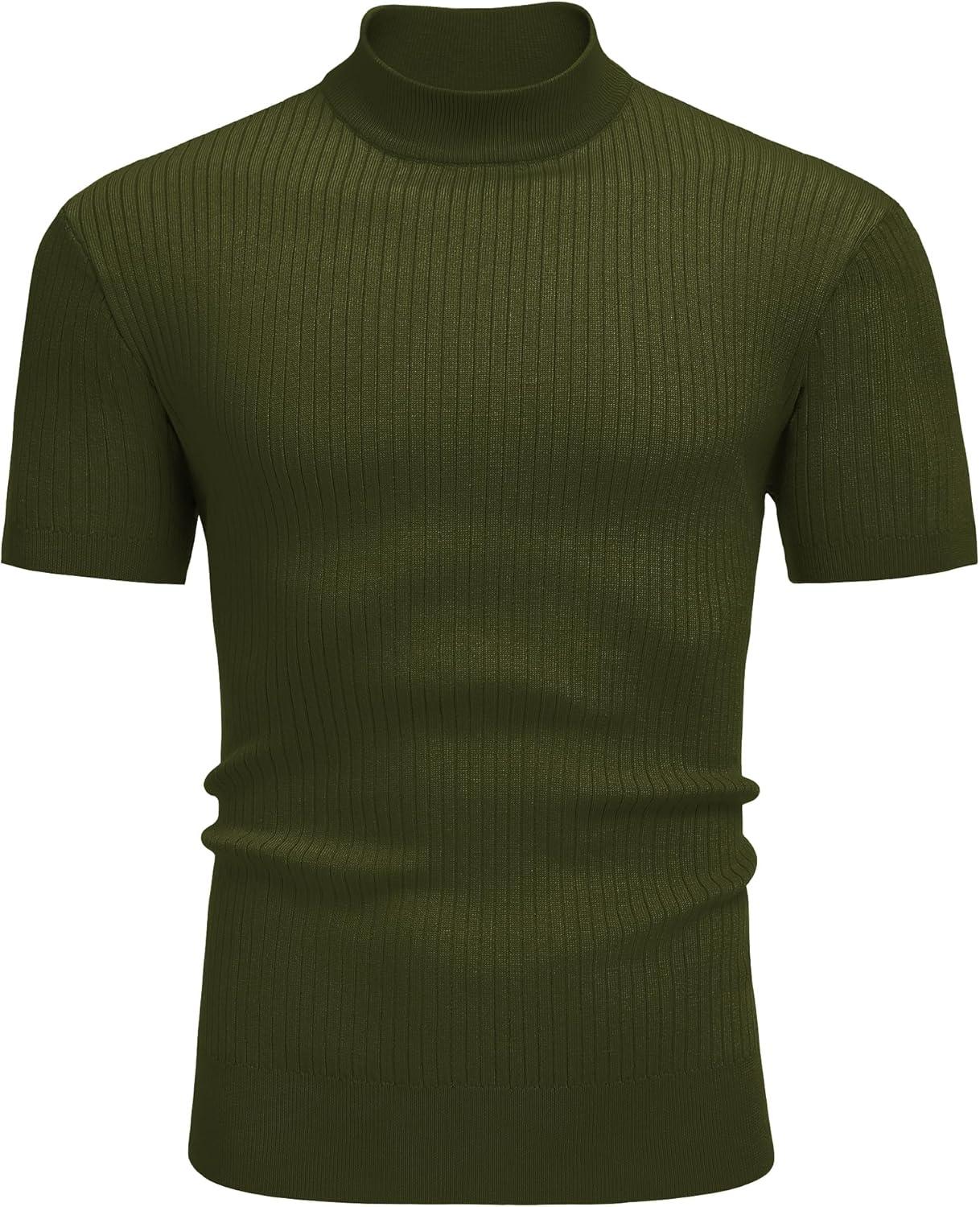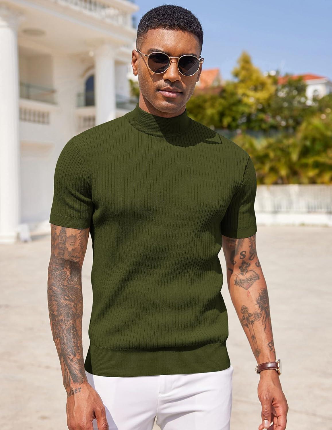 COOFANDY Men’s Mock Turtleneck Sweater Short Sleeve Casual Basic Tops Ribbed Knit Pullover Solid Tee(Army Green)