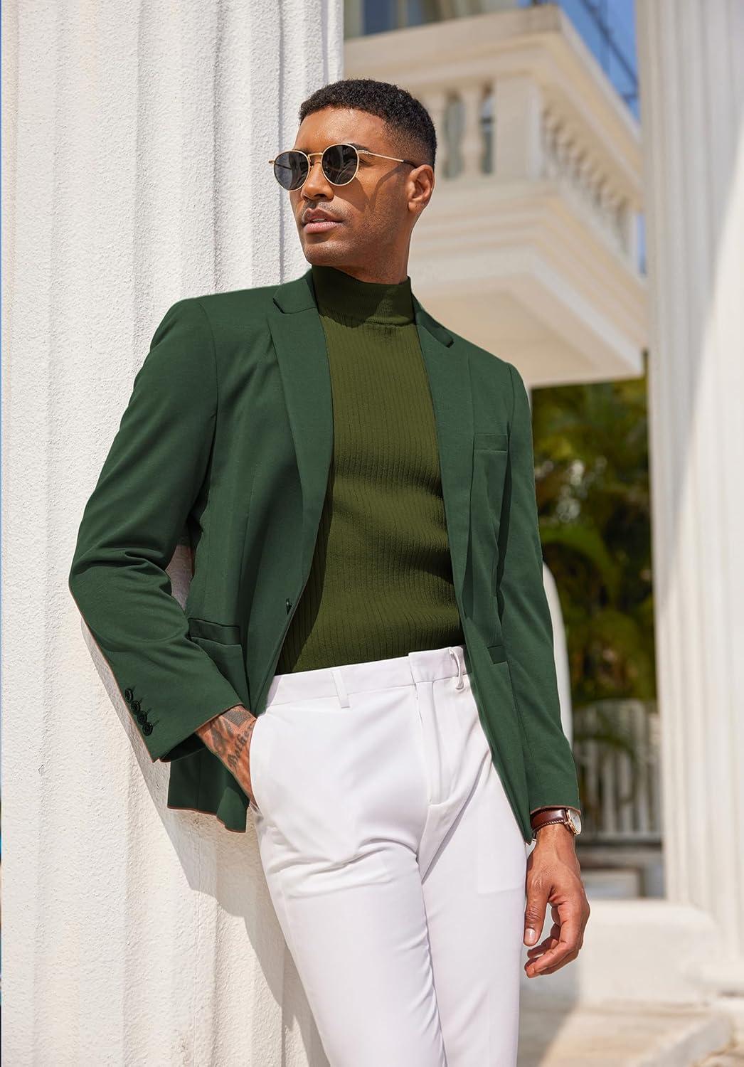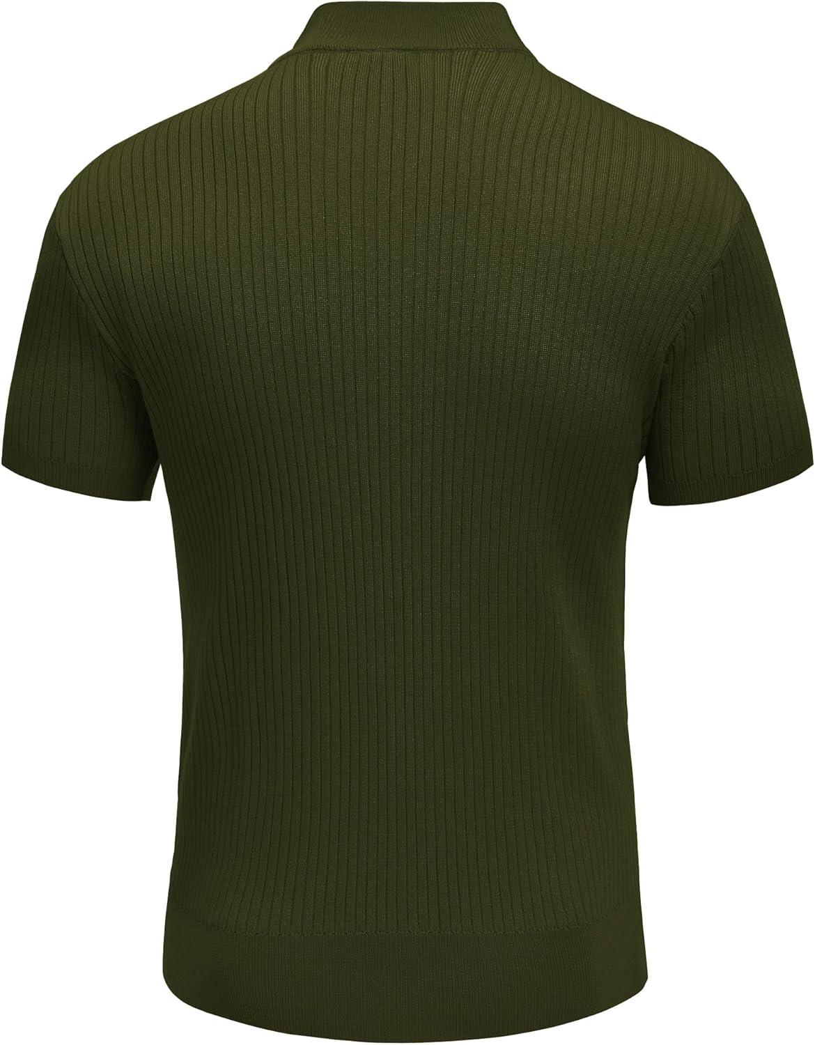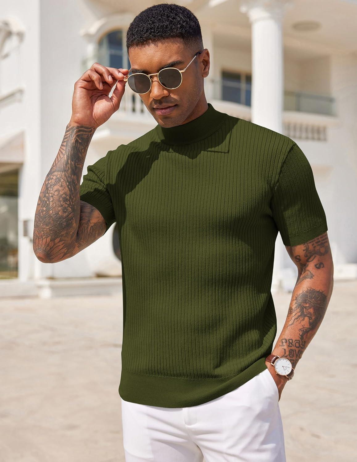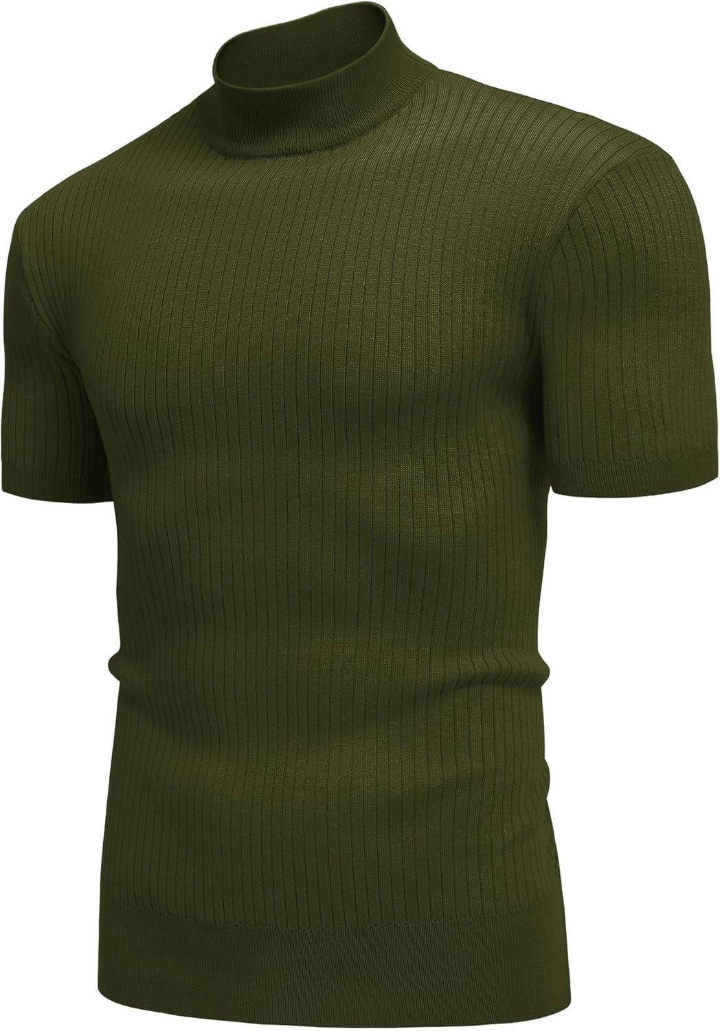 COOFANDY Men’s Mock Turtleneck Sweater Short Sleeve Casual Basic Tops Ribbed Knit Pullover Solid Tee(Army Green)